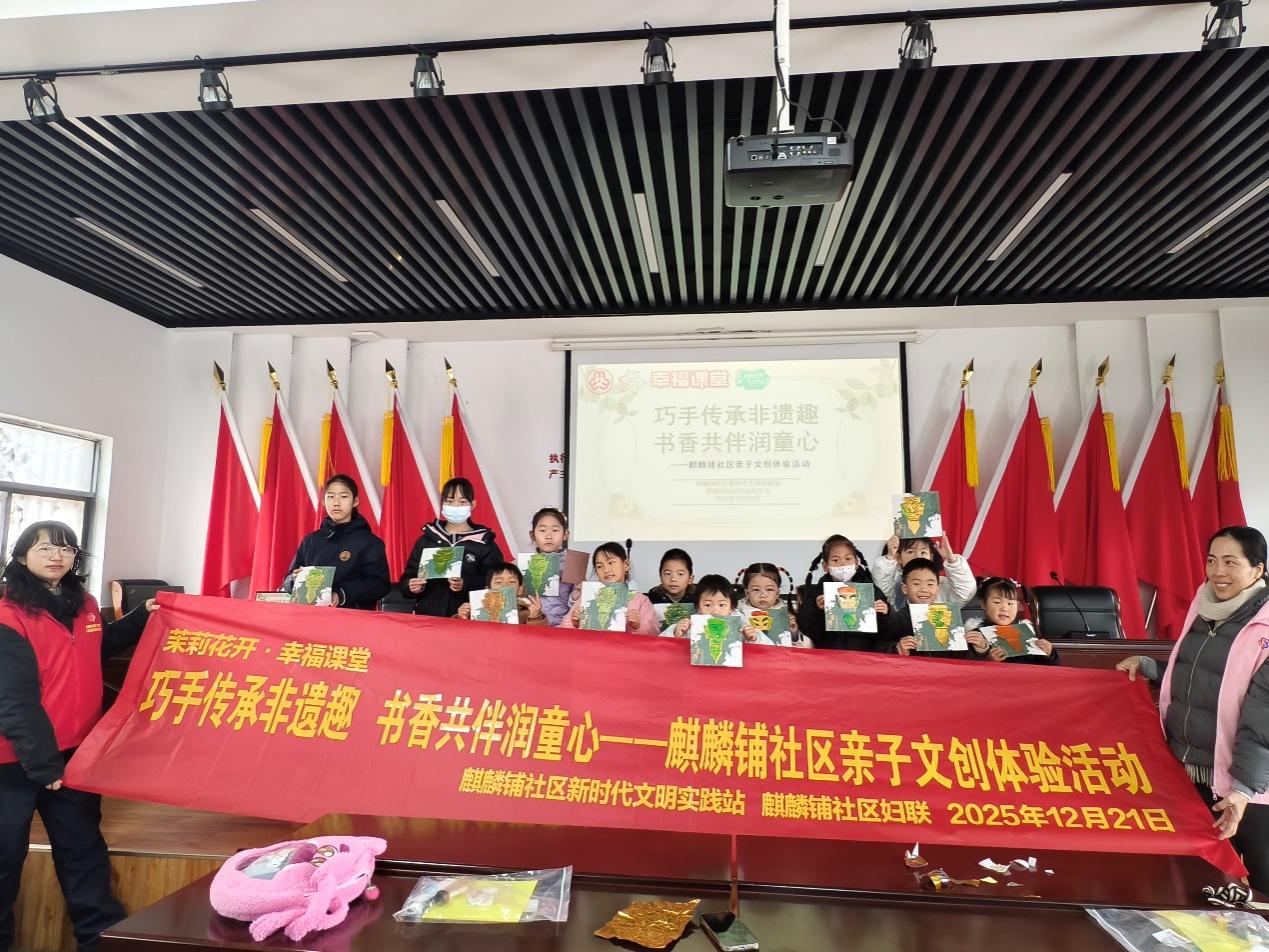 本次亲子文创体验活动将家庭教育引导、阅读习惯培育与非遗文化体验有机结合,使亲子陪伴从“在一起”转向“共成长”。通过可参与、可体验、可沉淀的活动形式,不仅提高了家庭互动质量,也进一步推动文化元素融入社区家庭日常生活。未来,麒麟铺社区将持续依托新时代文明实践阵地,开展形式多样的亲子文化活动,不断丰富社区家庭教育与文化服务内容,营造书香与传统并重的良好社区氛围。