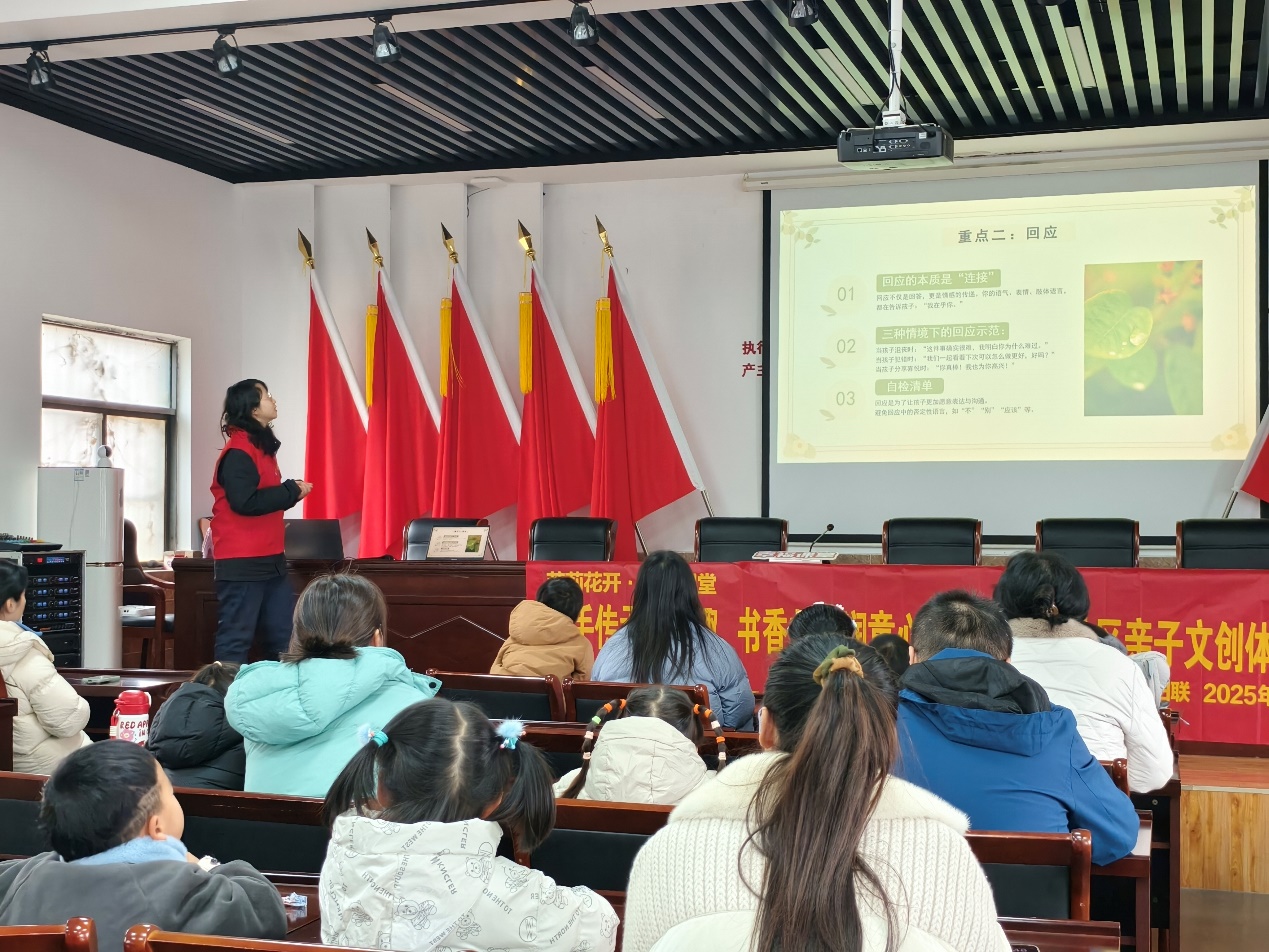 活动通过“你来比划我来猜”亲子互动小游戏拉开序幕。家长与孩子协作参与、轮流展示,在轻松愉快的氛围中迅速拉近距离,也为后续交流营造了开放、融洽的现场环境。随后,活动围绕家庭教育主题展开引导,通过生活化情境讲解,引导家长重新思考陪伴的内涵,强调高质量互动、情绪回应与共读共学在儿童成长中的重要作用。