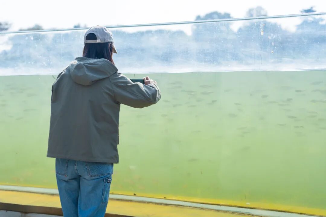 “‘大鱼缸’真是绝了!凑近能看到湖中水生植物、各种鱼类组成的‘湖底世界’,放眼望去还能看到南京城最美天际线。”日前,杭州游客吕女士带着孩子,专程来玄武湖景区探秘新晋网红“大鱼缸”。