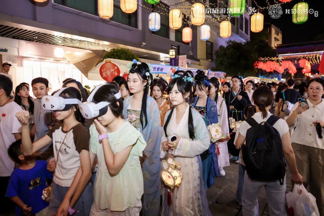 今年以来,南京力促文商体旅融合,夜游南京有了更多的“打开方式”,越来越多的游客在南京慢下来、住下来。在玄武湖,节假日的夜空下,3D沉浸式水幕投影《寻脉玄武湖》、全息纱幕投影《玄武湖奇幻夜》在水上变幻出绮丽的画卷,游客可以亲眼看到“玄武”神兽腾云驾雾而来,还能亲临李白笔下壮观的“京湖阅武”现场。国庆假期举办的第六届熙南里中秋笪桥灯市,以“遇见笪桥,熙南有戏”为主题,在延续经典花灯市集的基础上,深挖熙南里独有的戏曲文化资源,观众听戏赏景的同时还可以参与压轴演出,并首次引入“科技+文旅”新项目——《熙南里萌动队》,借助MR(混合现实)技术,虚拟小精灵带领游客穿梭于千年古巷与璀璨花灯之间,解锁穿越古今的奇妙体验。