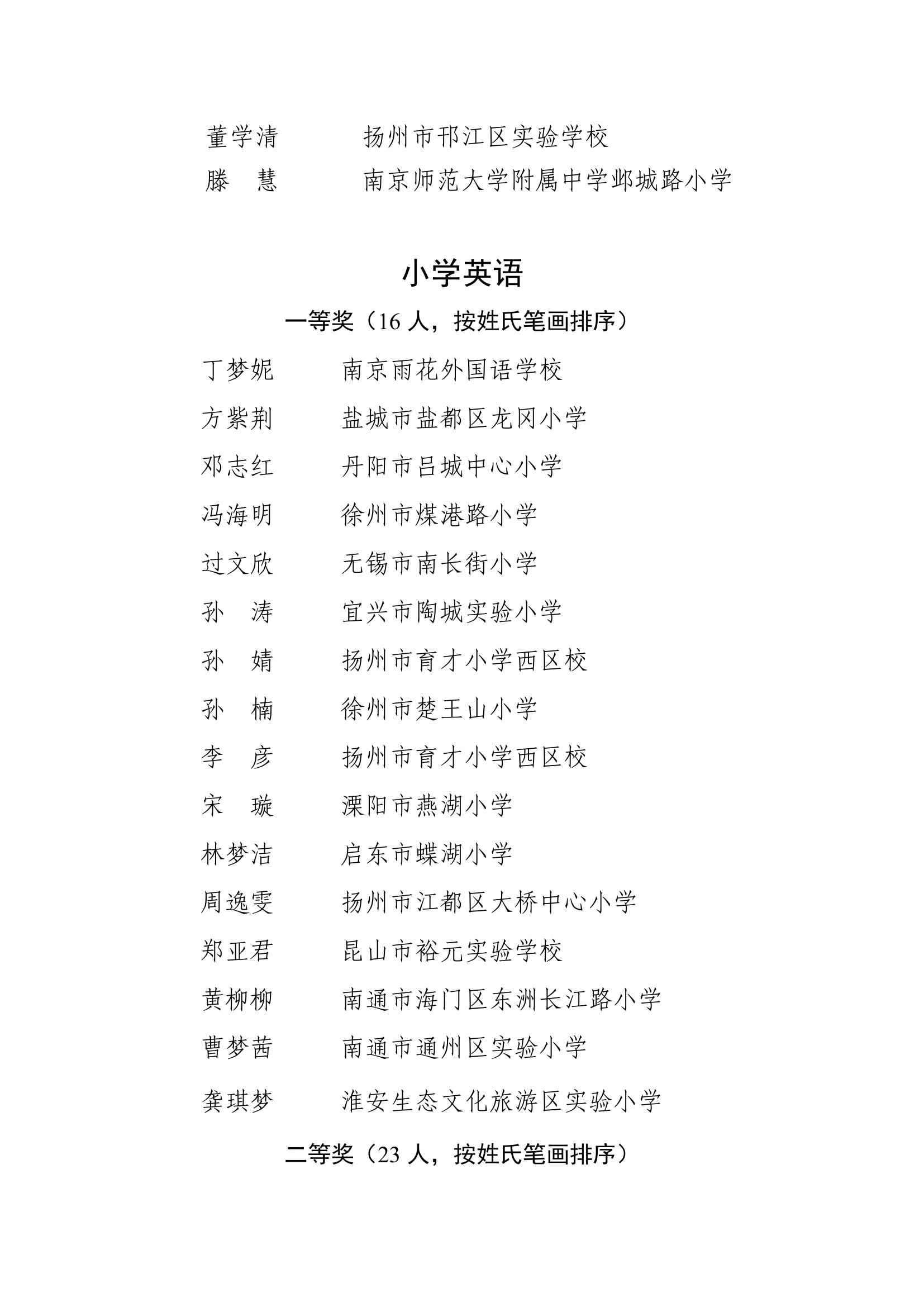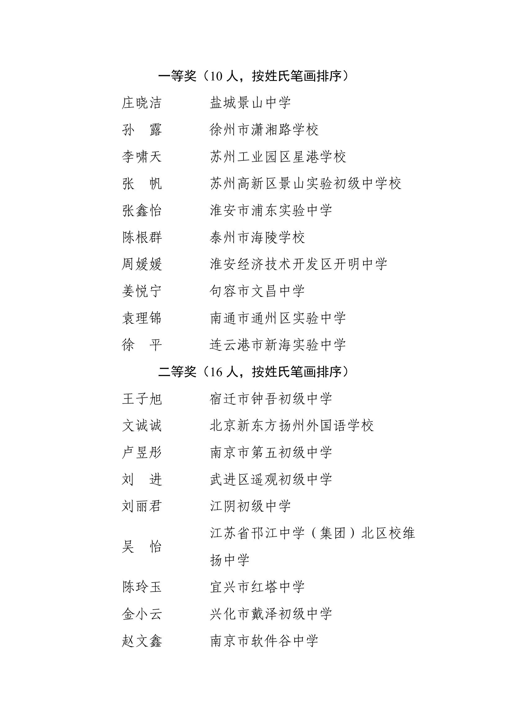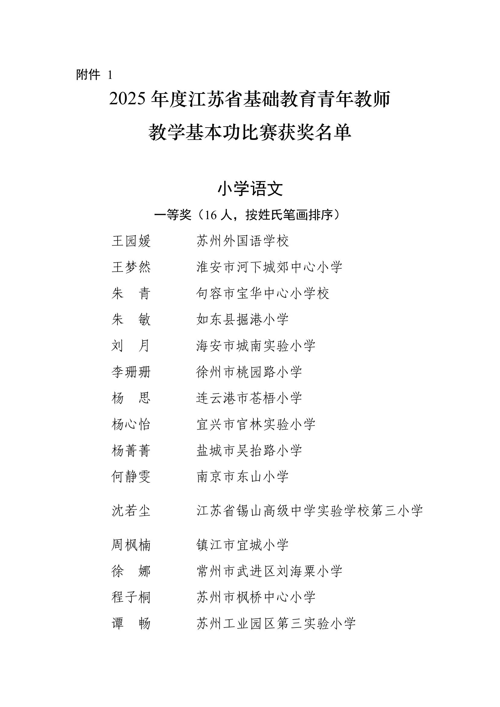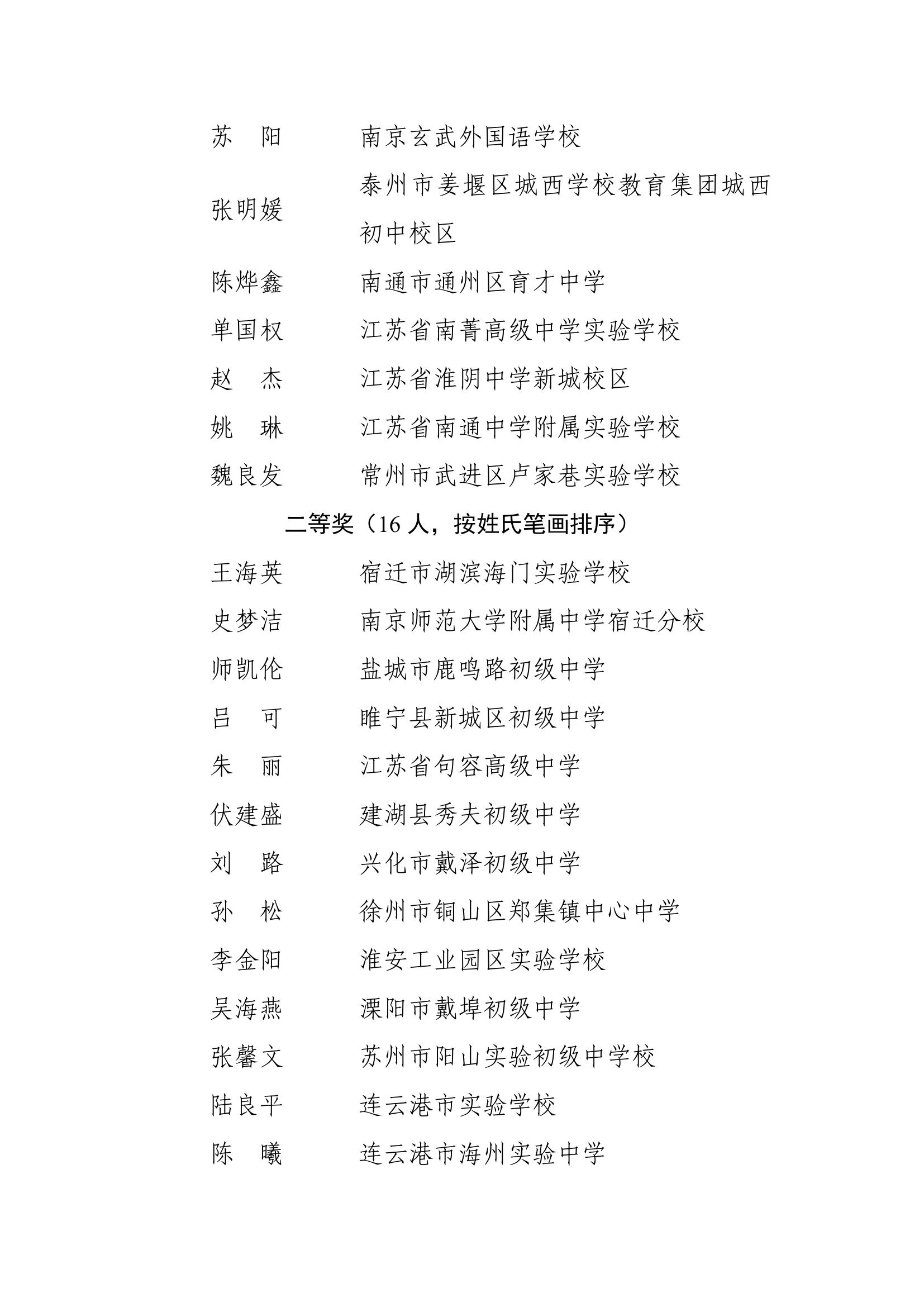 2025年度江苏省基础教育青年教师教学基本功比赛获奖名单