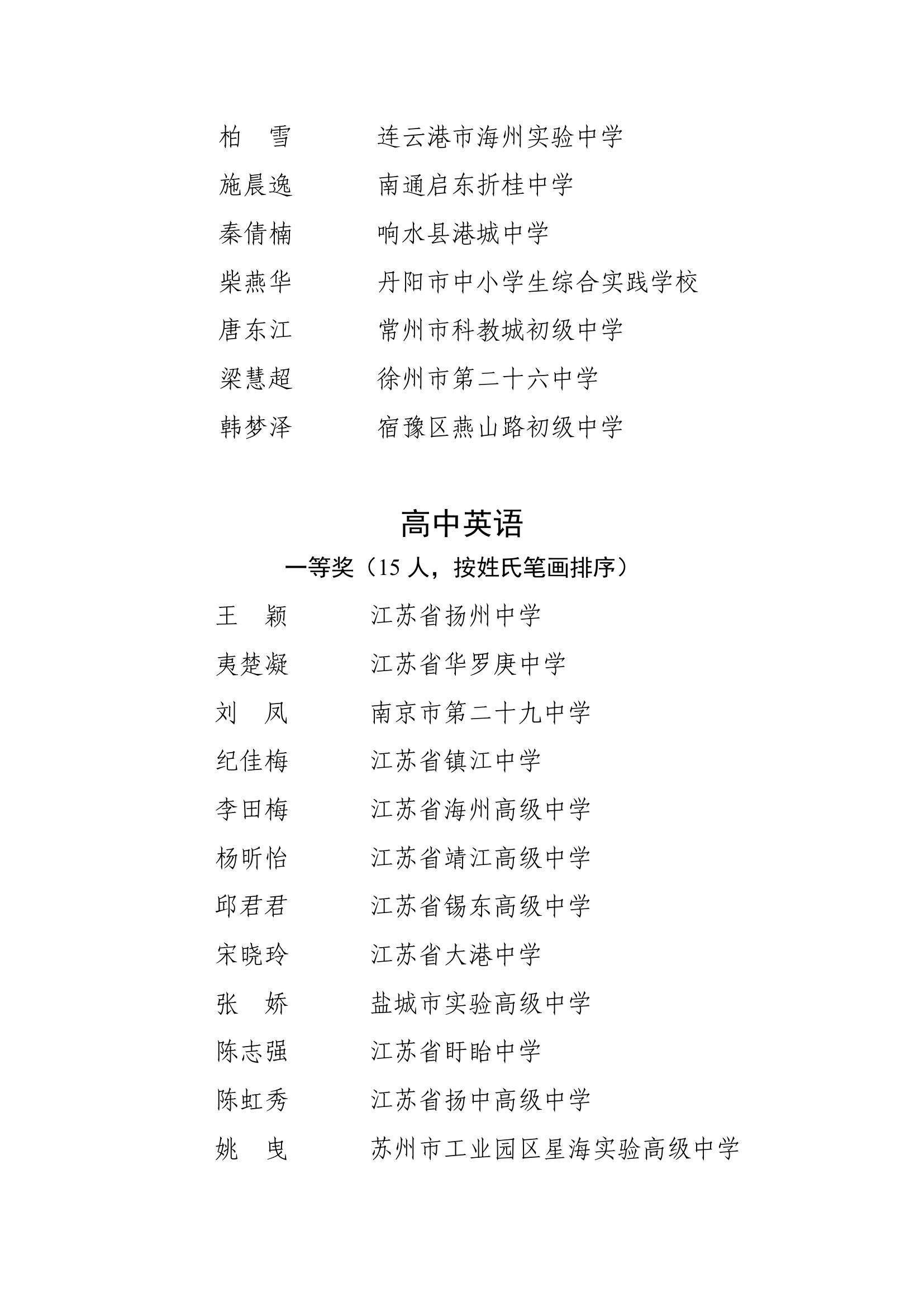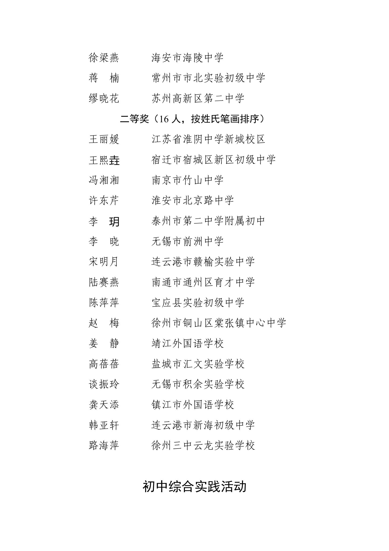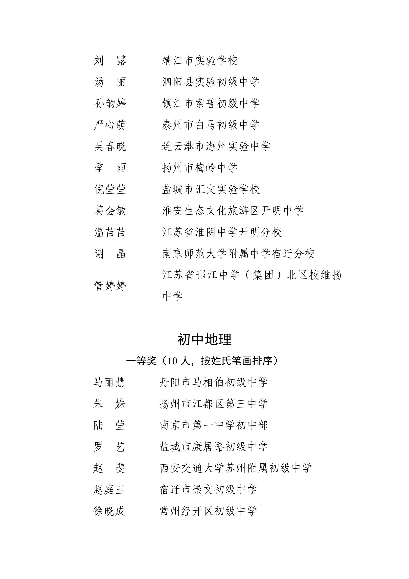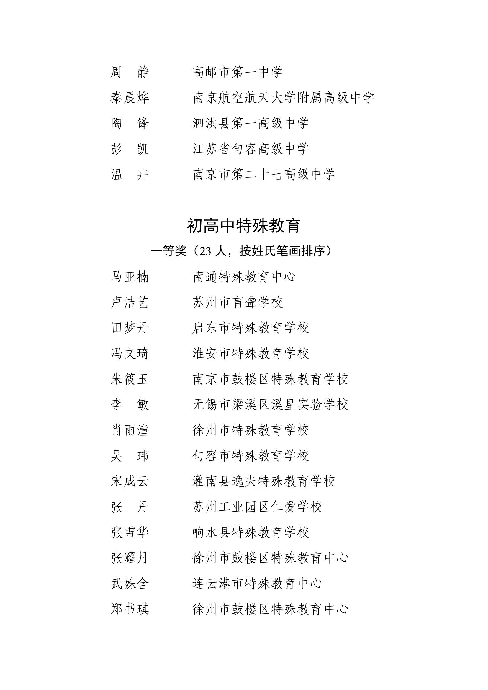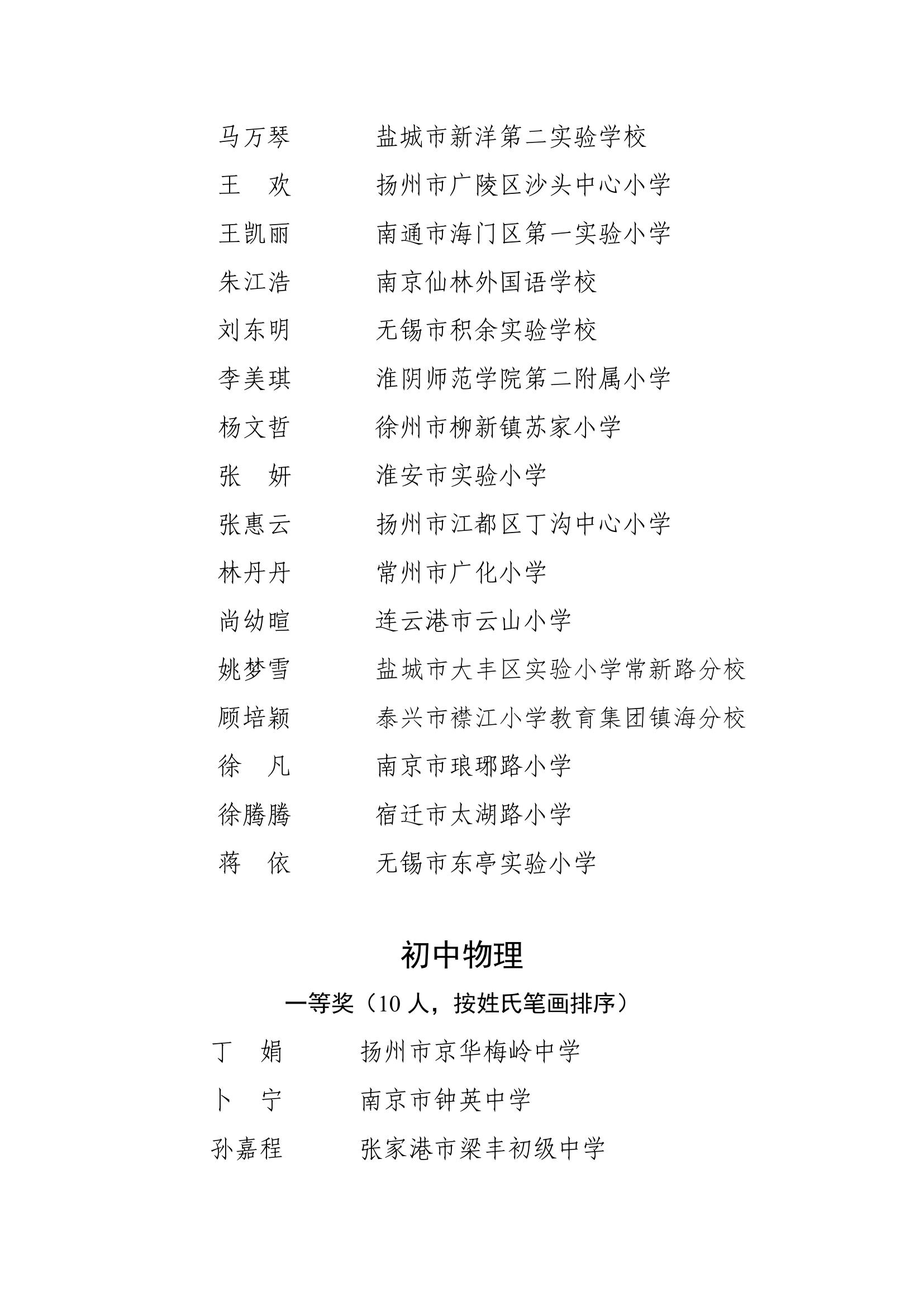 2025年度江苏省基础教育青年教师教学基本功比赛获奖名单