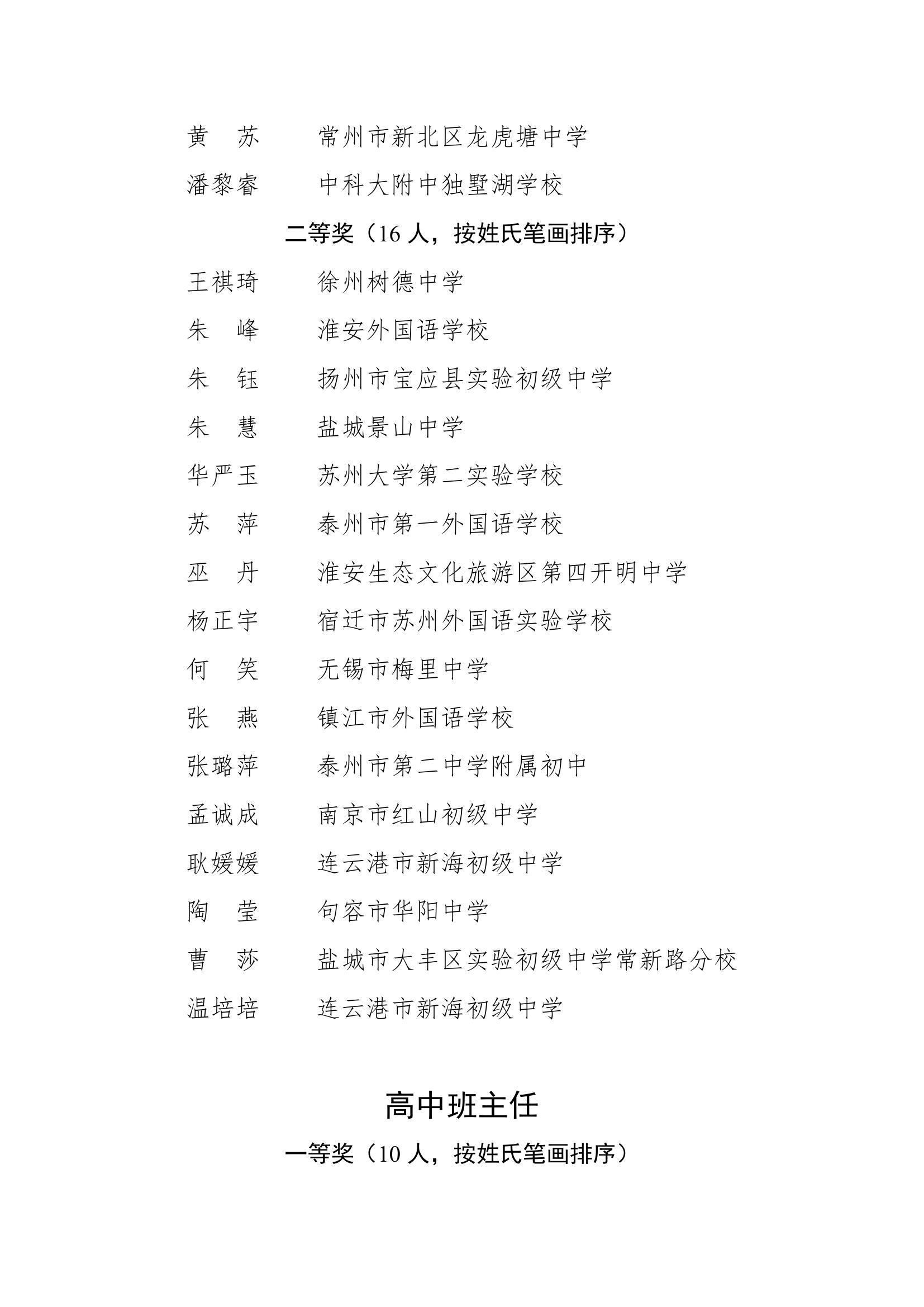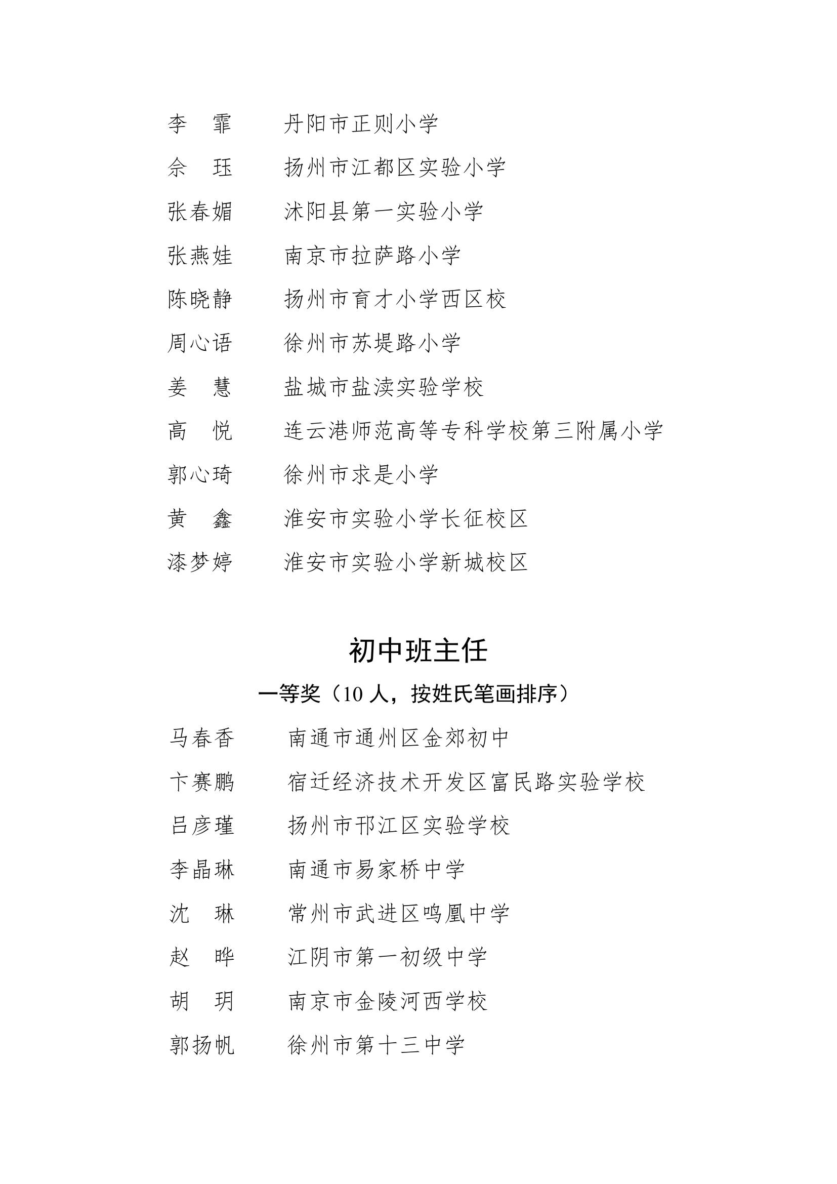 2025年度江苏省基础教育班主任基本功比赛获奖名单