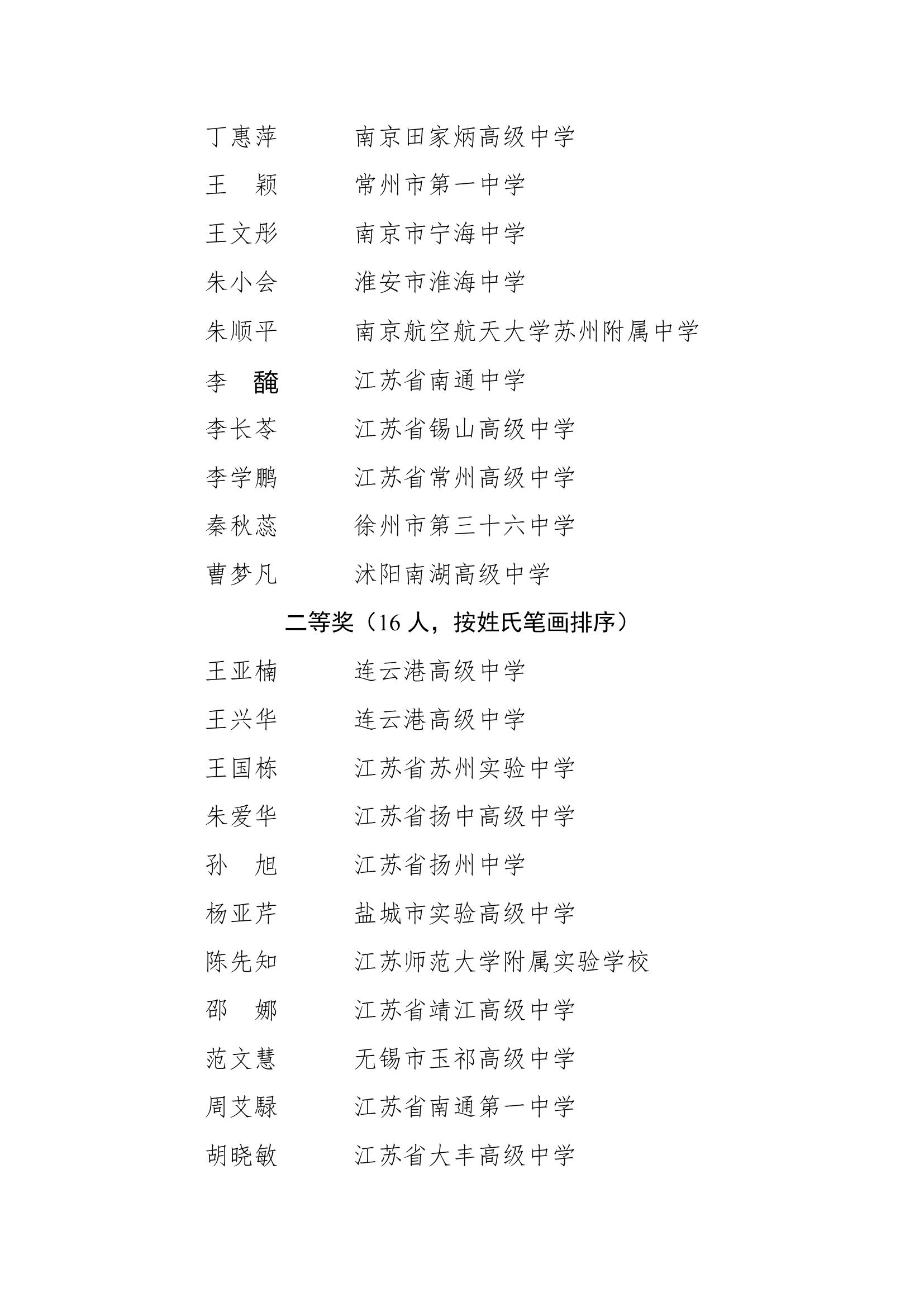 根据相关通知,今年度江苏共有618位教师参加省级决赛,其中240位获一等奖、378位获二等奖。具体名单如下: