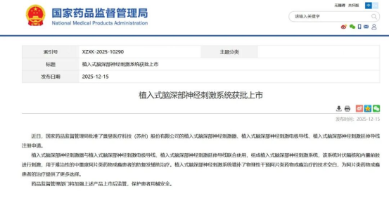 新华日报财经讯 近日,景昱医疗科技(苏州)股份有限公司宣布,其研发的“植入式脑深部神经刺激系统”正式获得中国国家药品监督管理局(NMPA)三类医疗器械注册证。这是全球首个获批用于治疗成瘾类精神疾病的侵入式脑机接口产品。