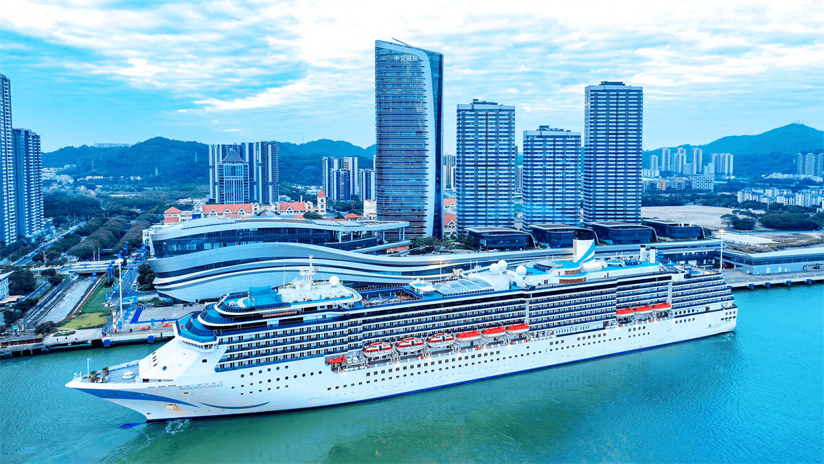 爱达·地中海号停靠广州南沙国际邮轮母港