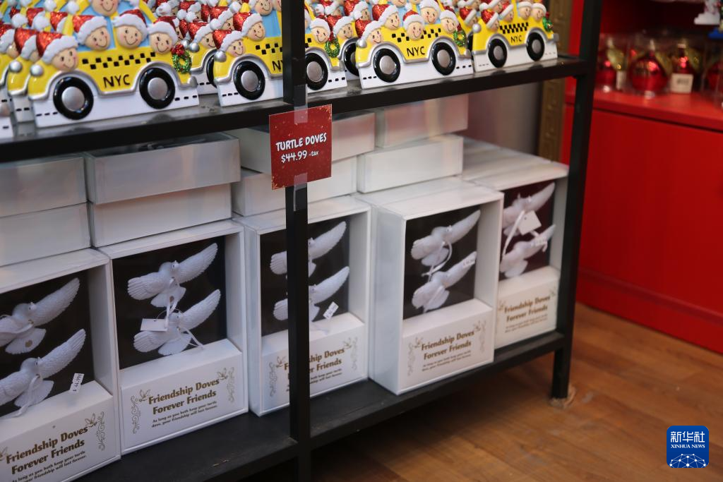 在曼哈顿中城地区第七大道上,有40年历史的“圣诞小屋”礼品店正售卖各种圣诞礼品和装饰品。店内商品绝大部分产自中国,但当前售价颇高,很少有10美元以下的商品。比如,一顶驯鹿图案线帽售价近30美元,一株45厘米高的人造圣诞树售价接近20美元。