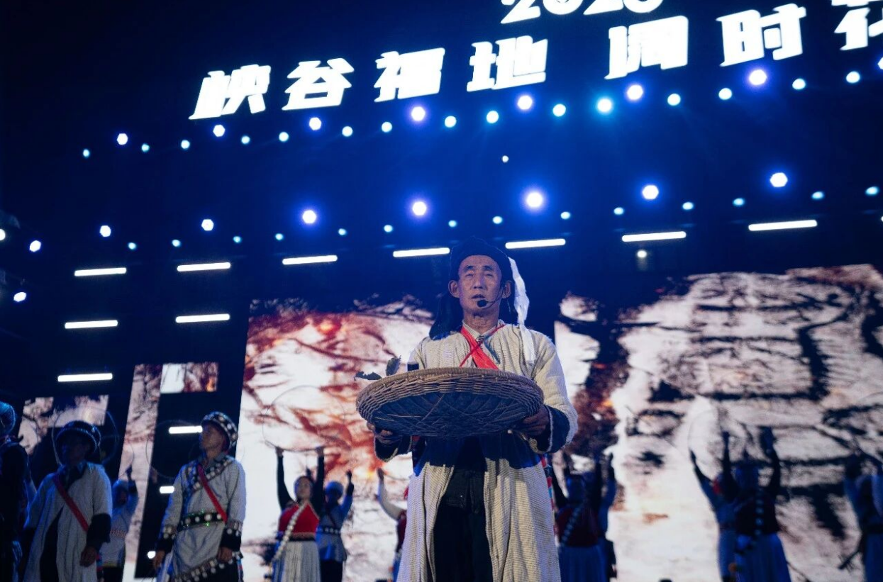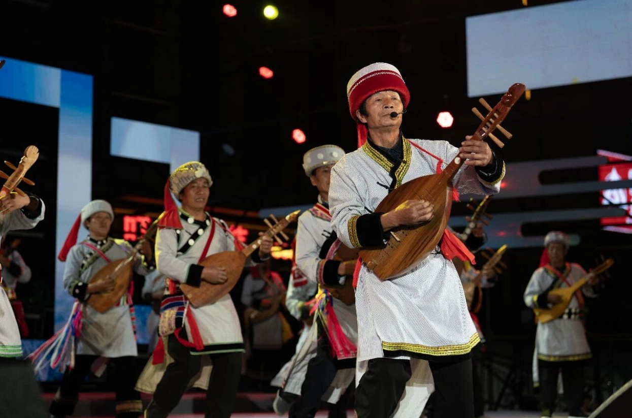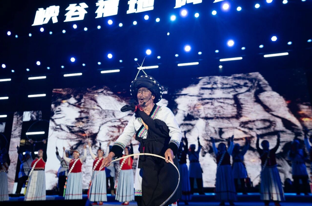 随后,展现傈僳族先民刀耕火种、纺织狩猎原始生命力的群舞《傈僳》激情上演;歌曲《四季》以唯美歌声,勾勒出峡谷四季轮回的劳作与收获画卷;接着,数十把傈僳族传统乐器“期奔”齐奏,《月亮山下的“期奔”声》以欢快热烈的旋律点燃全场。
