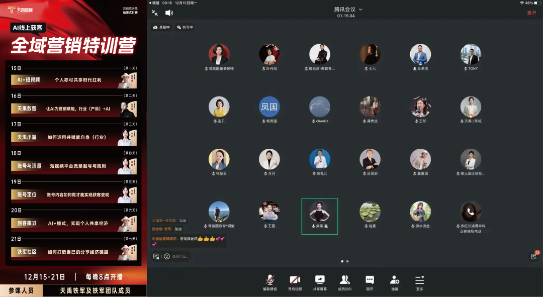 在课程端,天禹数智发挥多年企业教培经验,打造了以实战为核心的 AI 短视频营销知识体系。课程采用 “工具实战 + 现场实操 + 1V1 诊断复盘” 的闭环教学模式,摒弃传统理论化教学,形成从流量入门到客资精通的完整学习路径。半年内课程体系历经 3 次重大升级,累计解析 500 余个实战案例,月均开展 4 + 场课程,单场学员超 100 人,帮助众多企业找到行业专属获客密码。
