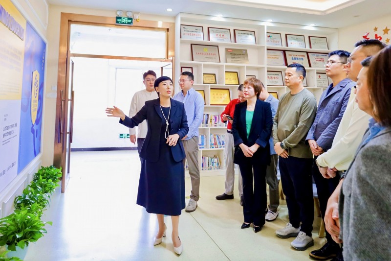 金翅膀教育创始人、董事长李泽红热情接待走访团,陪同参观了多元融合项目“星星艺术馆”、星途创艺画室,并全面介绍了企业二十年发展历程与“全生命周期”教育服务体系建设成果。自2005年创立以来,企业始终秉承“用爱施教,以爱育爱”的宗旨,构建了覆盖早教托育至成人教育的全龄段服务体系,业务涵盖英语教育、职业教育、特殊教育及企事业单位定制服务等多个领域。其致力于赋能学员终身成长的办学理念与实践,获得了走访团的一致赞许。