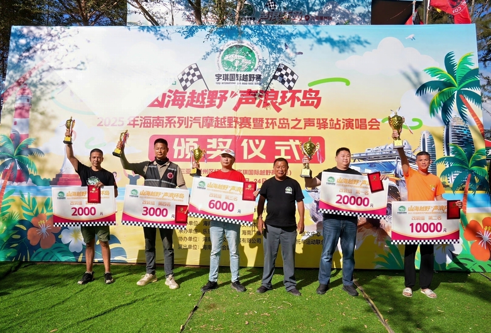 来自海南省的量产组冠军符福敢难掩兴奋,言语间满是对赛事的认可,说道“能在海南的山海间驰骋,一边感受越野的速度与激情,一边欣赏雨林沙滩的绝美风光,这是我参加过最有特色的赛事!”名人/女子组季军孙男带着爽朗的笑容,也对着镜头分享心声:“赛前我还在担心自己的经验不足,没想到这里的赛道和氛围给了我十足的底气。最重要的是,海南的山海风光让比赛多了一份诗意,这趟旅程比奖杯更珍贵。”两位车手的感言引发了台下观众的共鸣,来自海南本地的观众王先生也忍不住说道:“白天看车手们在山海间飞驰,肾上腺素飙升,晚上听着演唱会吹海风,惬意又放松,这才是属于三亚的浪漫,希望以后能多办几次这样的活动!”颁奖过程中,现场掌声雷动,欢呼声此起彼伏,共同向获奖车手致以祝贺,所有获奖车手最终登台合影留念,定格荣耀瞬间。