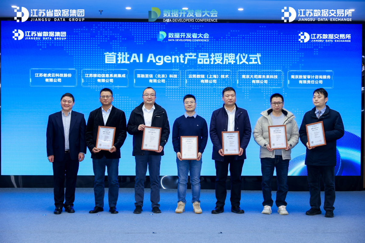 2025年12月,虎翅云旗下AI+企业、AI+库存、AI+产能、AI+招标、AI+产业招商等五个智能体产品应邀作为江苏省优质AI+数据场景化应用产品,正式挂牌上线江苏数据交易所。