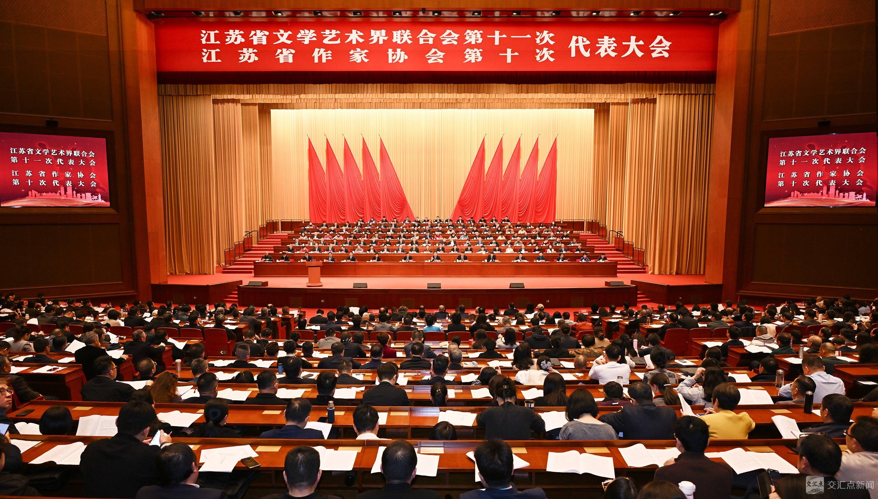 交汇点讯 12月24日,江苏省文学艺术界联合会第十一次代表大会、江苏省作家协会第十次代表大会在南京开幕。省委书记、省人大常委会主任信长星,中国文联党组书记、副主席张政,中国作协主席、党组书记张宏森出席开幕会并讲话。省长刘小涛、省政协主席张义珍出席。