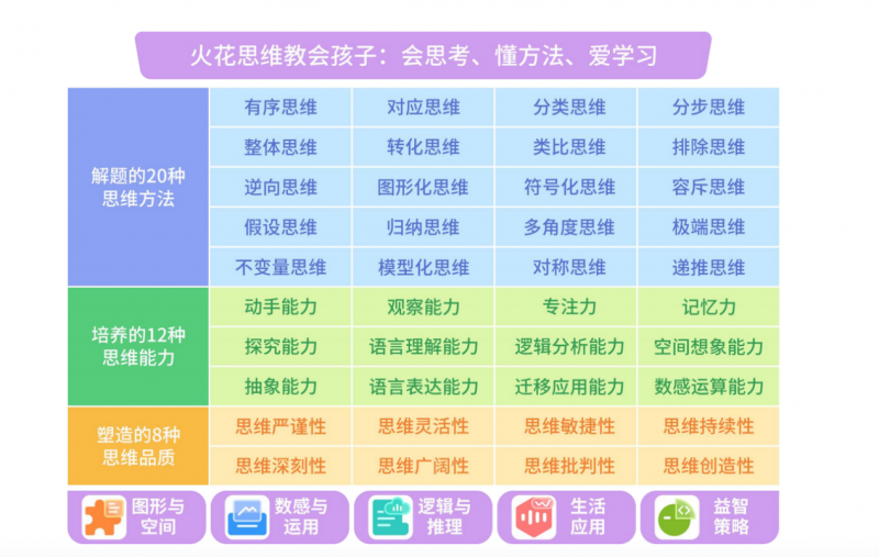 火花思维自2017年创立以来,便秉承教育初心,矢志不渝地助力孩子积累知识、培养思维,并全方位锻炼孩子解决问题的能力。