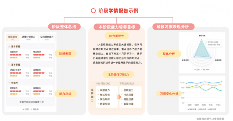 通过不同能力模块支撑孩子的思维成长:包括观察、想象、推理、计算、建模、表达、验证、迁移等。