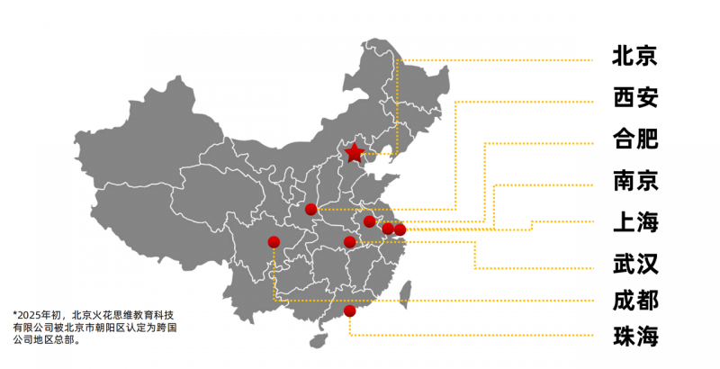 在组织与运营层面,火花思维已在北京、上海、武汉、成都、西安、合肥、南京、珠海等多个城市布局团队。2025年初,北京火花思维教育科技有限公司被北京市朝阳区认定为跨国公司地区总部,进一步体现了品牌在教育科技领域的持续发展能力与综合实力。