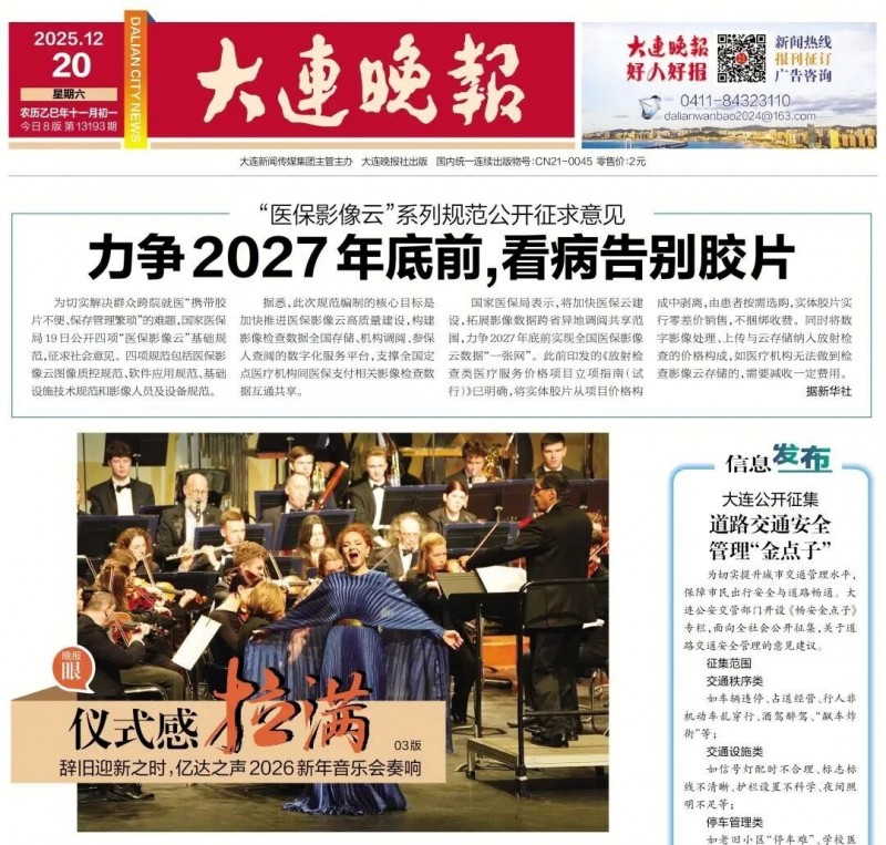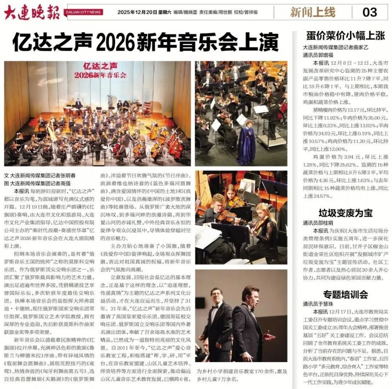 一曲气势磅礴的《红旗颂》,拉开了第31届亿达之声2026新年音乐会大连站的序幕,标志着充满挑战的2025即将落下帷幕,充满希望的2026即将到来。每一年辞旧迎新之时,“亿达之声”都会在滨城奏响动人的天籁,为滨城观众奉献了一场充盈心灵的视听盛宴。