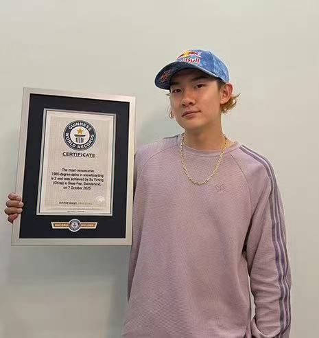北京时间12月25日,吉尼斯世界纪录社交账号发文称:近日, 苏翊鸣在今年10月7日完成的“背靠背1980”动作获得了吉尼斯世界纪录的官方认证,确认他创造了“一次连贯滑行内完成单板滑雪1980度转体次数最多”的吉尼斯世界纪录。在此之前,他还是“首个完成内转1980抓板动作的运动员”吉尼斯世界纪录保持者。希望他能在即将到来的2026年米兰-科尔蒂纳冬奥会上继续绽放光彩!
