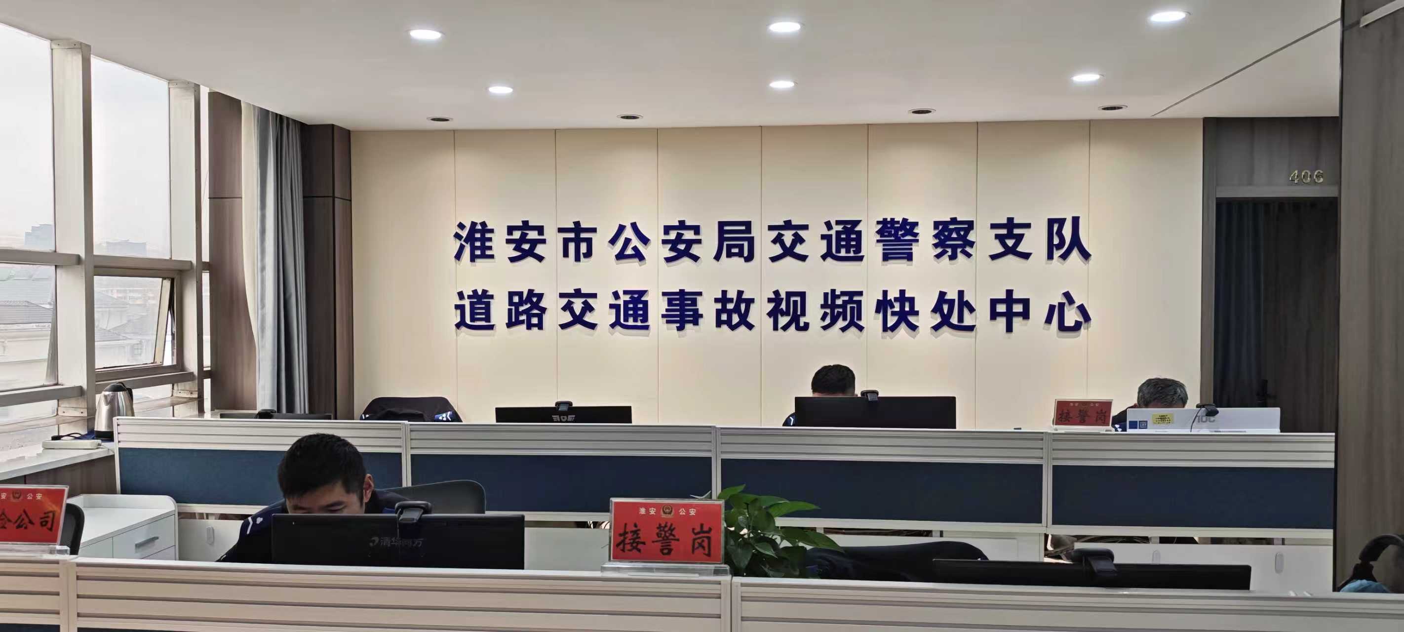“您好,请您根据我的提示打开手机后置摄像头,拍摄一下事故双方的车牌^”走进江苏省淮安市公安局交警支队道路交通事故视频快处中心,一位工作人员正与事故当事人进行视频通话,大厅内,各岗位人员密切协作,接警应答声与完成快处的提示声交替响起,一派有条不紊的忙碌景象。