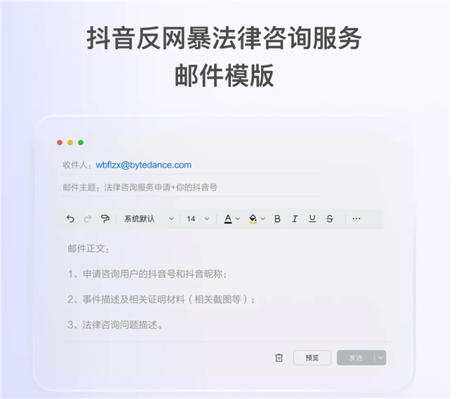 在此背景下,抖音持续进行反网暴治理的同时,于2023年底联合中国法律咨询中心,正式推出反网暴法律咨询服务,为疑似遭受网暴的用户提供法律咨询服务。