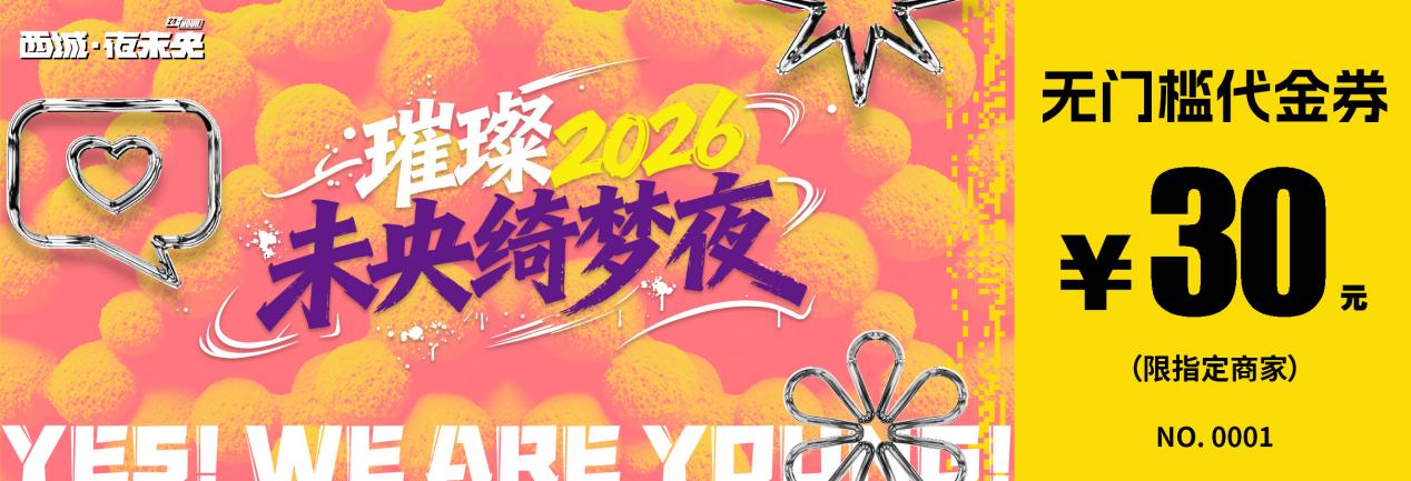 西城夜未央运动街区“璀璨2026·未央绮梦夜”,满足你关于跨年狂欢夜的想想!8轮锦鲤抽豪礼、幸运巡游、现场演出、街头歌会、新年大合唱、魔术秀、热门舞蹈快闪......拒绝温吞,迎新夜就是要“燃”起来!