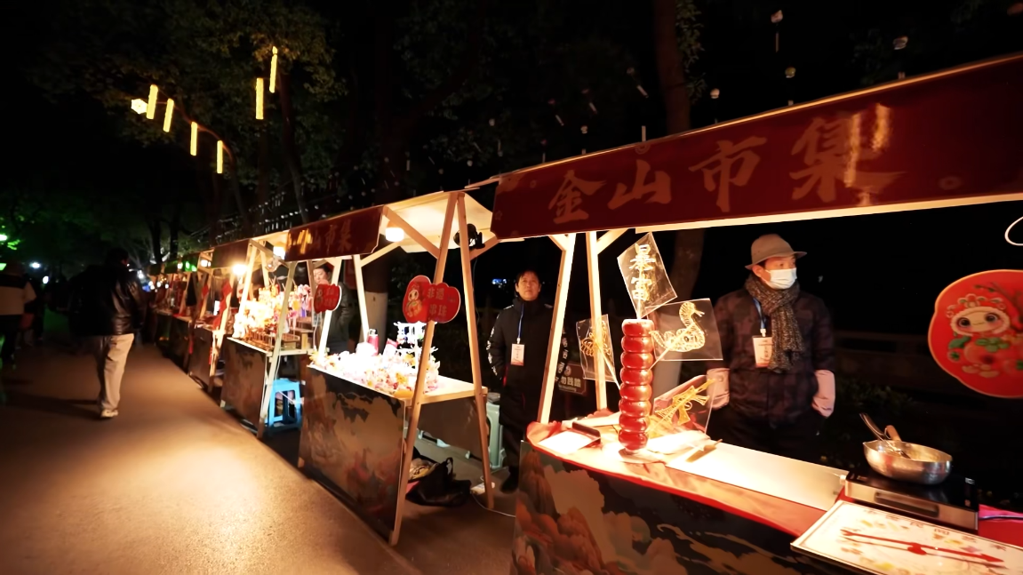 巡游表演、抽奖活动、零点撞钟……在镇江金山公园,除了以上活动,还有金山市集,古街的静谧与热闹交融,游客们可以在这里悠闲漫步,购买到承载祝福的纪念品。