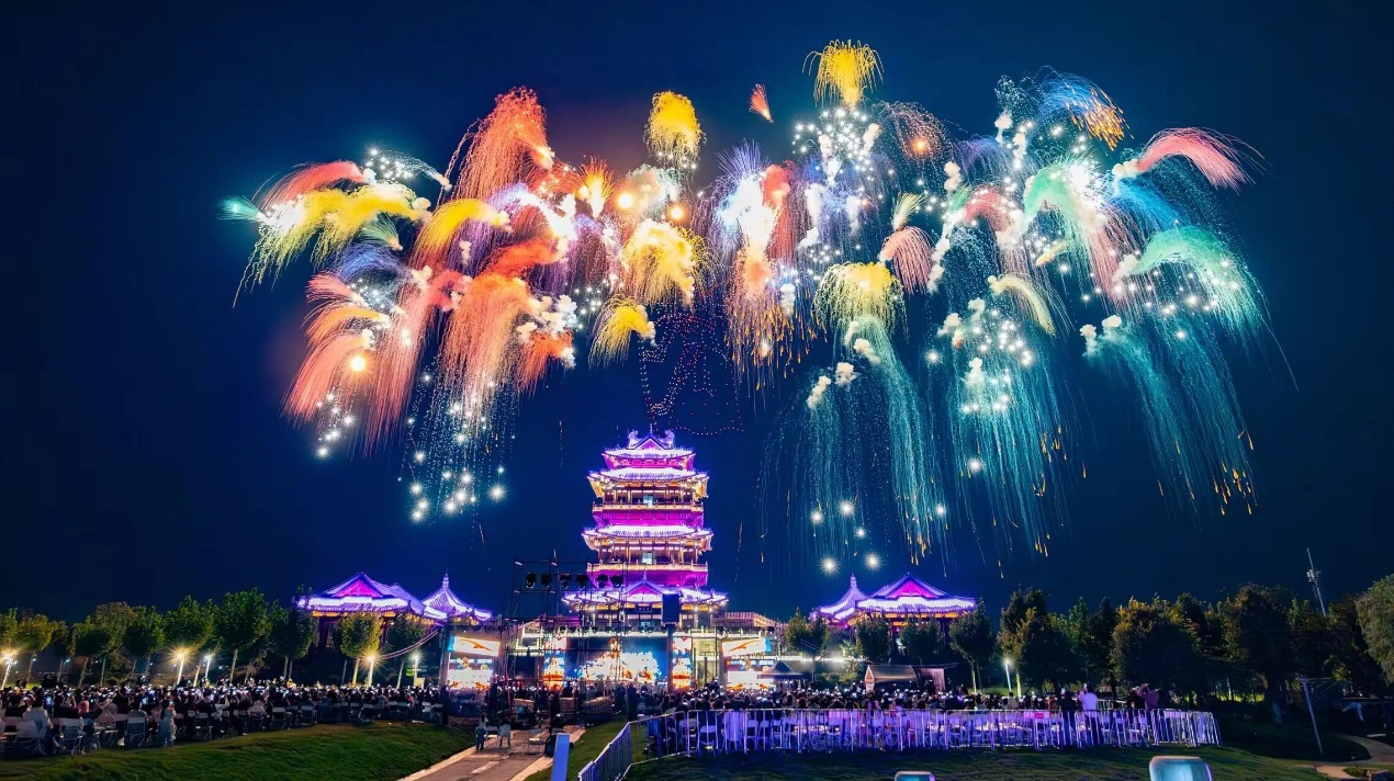 35万发超大规模烟花点亮夜空,搭配千架无人机演出,全国首个花卉主题烟火IP惊艳亮相,燃放时间超100分钟。
