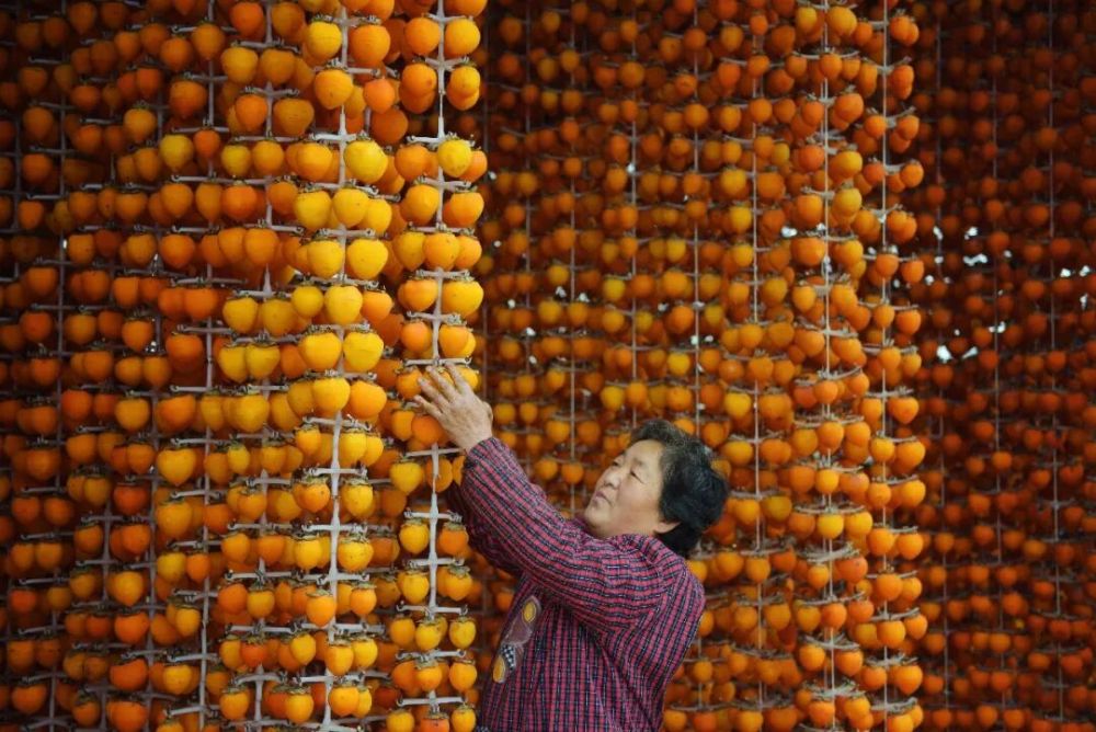 陕西省富平县曹村镇太白村村民在晾晒柿子。新华社记者 刘潇 摄