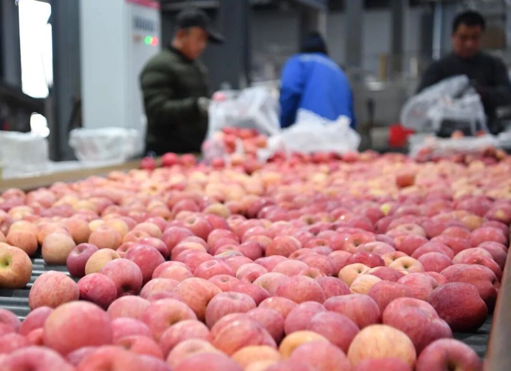 延安市洛川县一家果业企业工作人员在生产车间分拣苹果。新华社记者 张博文 摄