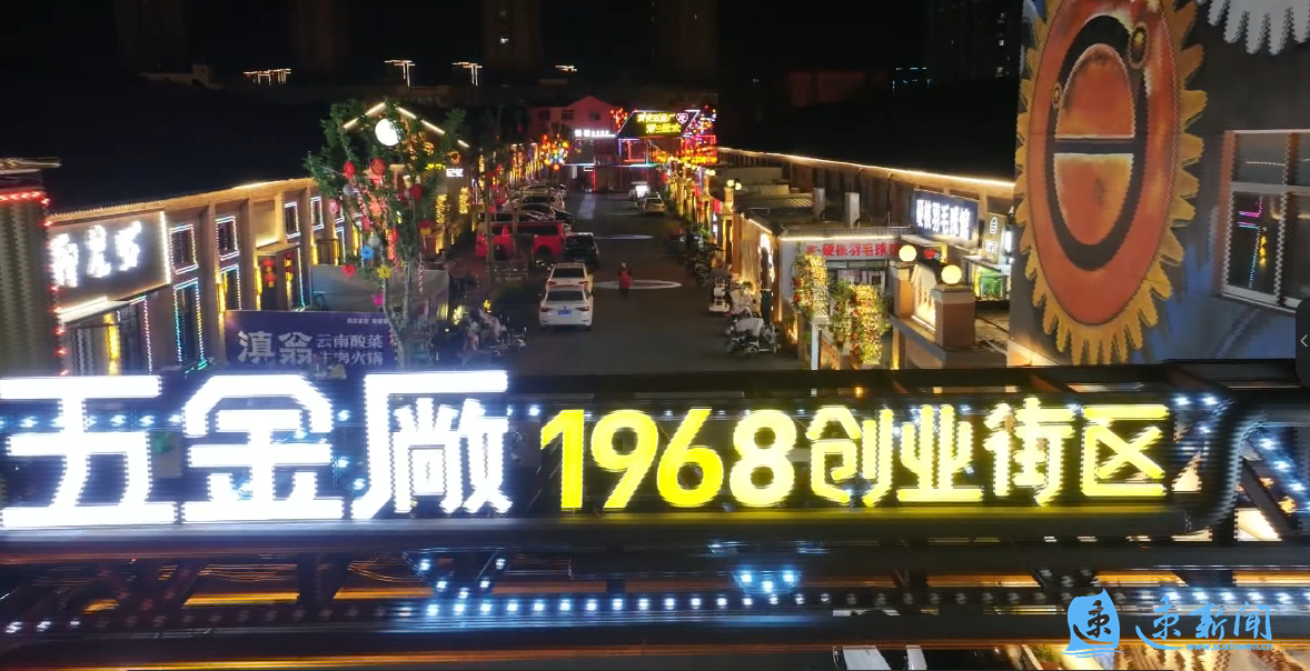 每天傍晚,泗洪县青阳街道的五金厂1968创业街区华灯初上,迎来一天中最热闹的时刻,餐饮美食、创意酒吧、运动健身等店铺客流络绎不绝。“晚上带着孩子来这里,有吃有喝有玩,运动场地也很好,全家人都很喜欢。”市民王婷婷说。