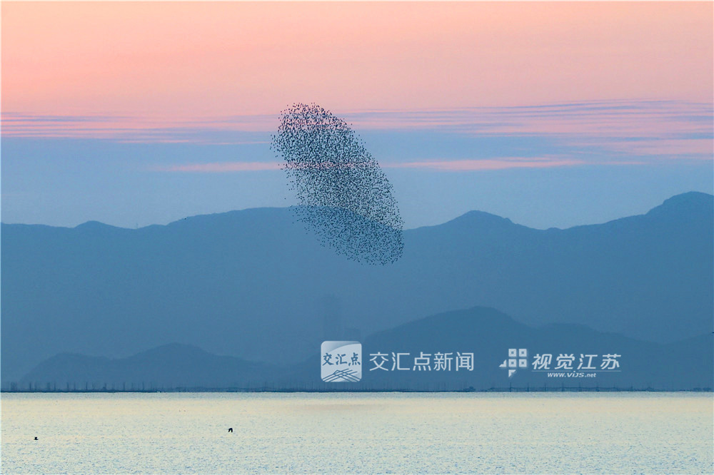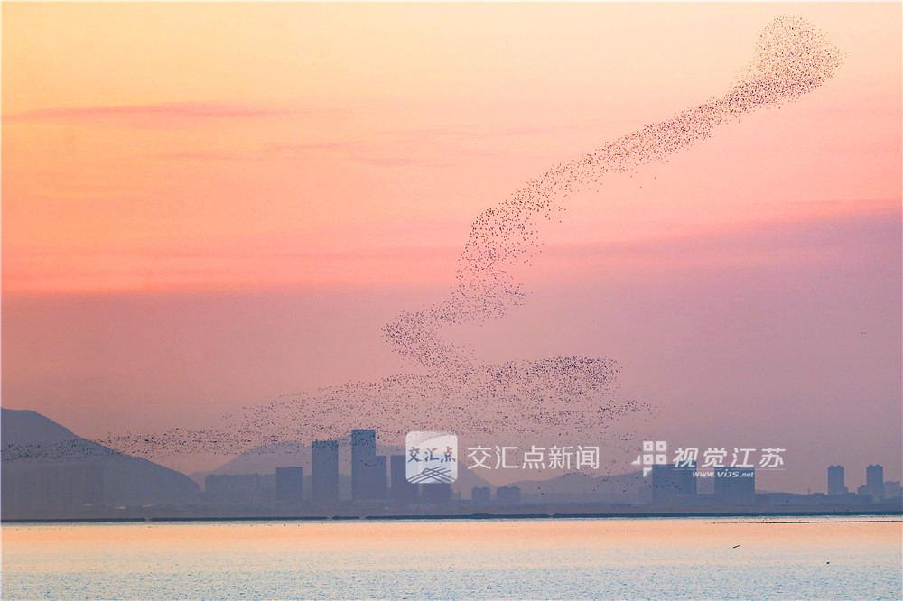 (特约摄影 司伟 7:04摄 9:44上线)12月27日清晨,在连云港市赣榆区沿海拍摄的“鸟浪”。 近年来,当地沿海生态改善,生物多样性逐步恢复,越冬候鸟数量逐年增多。