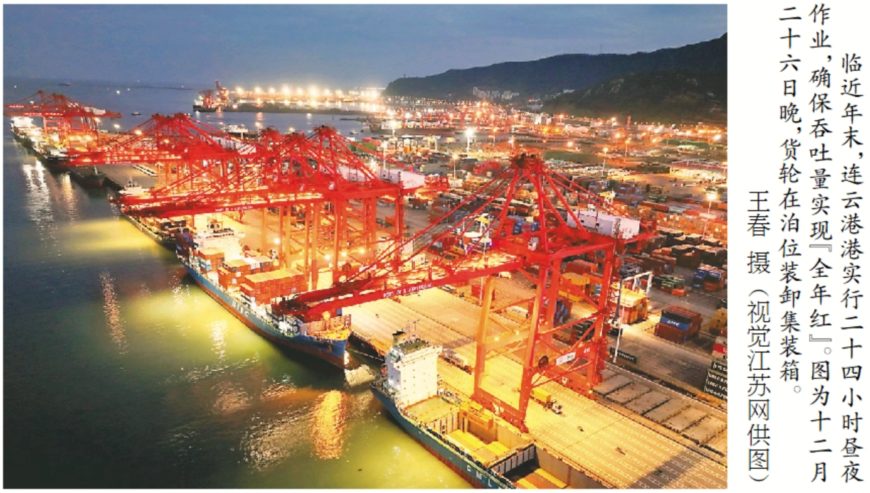 (特约摄影 王健民 9:30摄 11:55上线)12月27日,连云港港码头一片繁忙景象。临近年末,连云港港多措并举加快货物装卸转运效率,力争吞吐量再创新高。