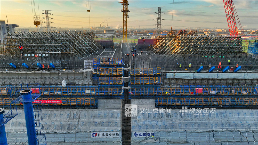 (特约摄影 王力 6:45摄 9:47上线)12月27日清晨,张靖皋长江大桥南航道桥施工现场一片繁忙。中交二航局施工人员近300人分布在大桥锚碇、南引桥、主塔施工点位,有序推进施工进度,大桥锚碇基础锚块施工过半,预计2026年上半年锚块施工完成。