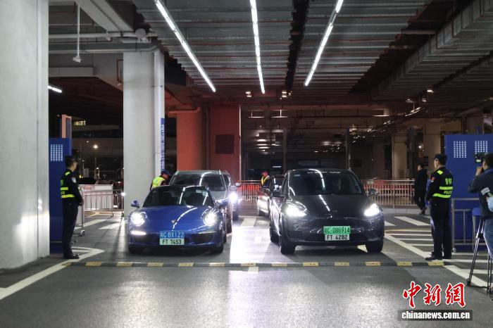 12月23日凌晨,首批“粤车南下”车辆在港珠澳大桥珠海公路口岸等待通关出境前往香港市区。当日,“粤车南下”入境香港市区正式实施,大湾区互联互通再进一步。 中新社发 黎钊德 摄