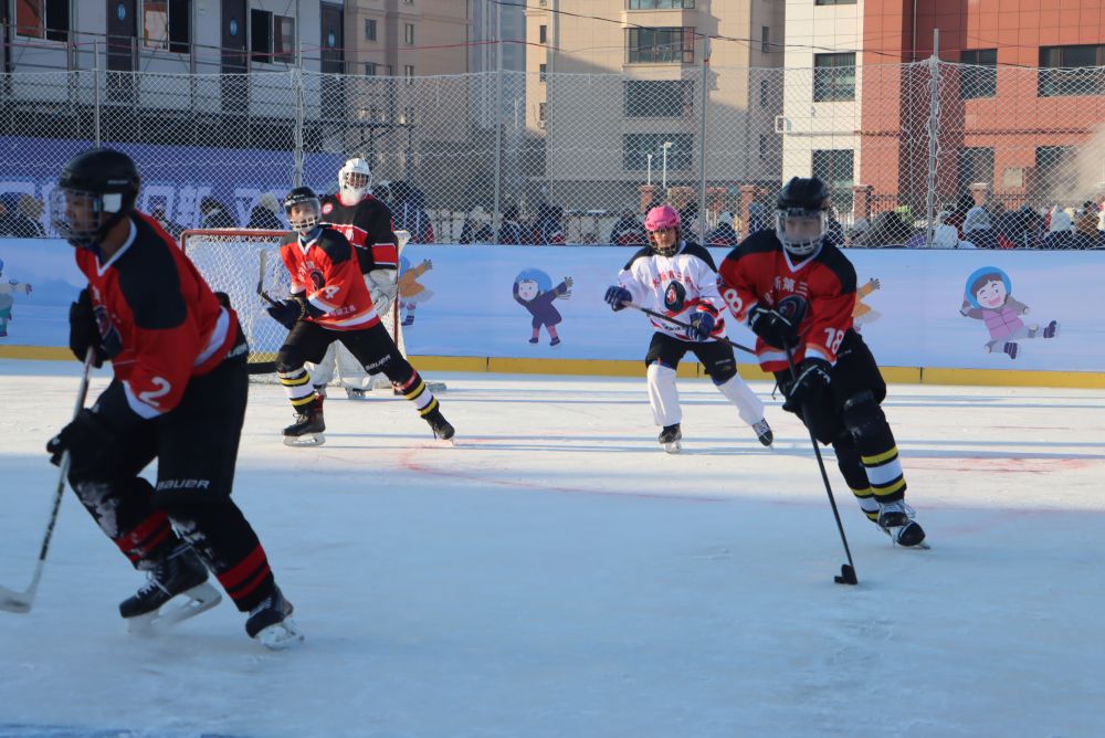 佳木斯市的学生们进行冰球比赛。(受访者供图)