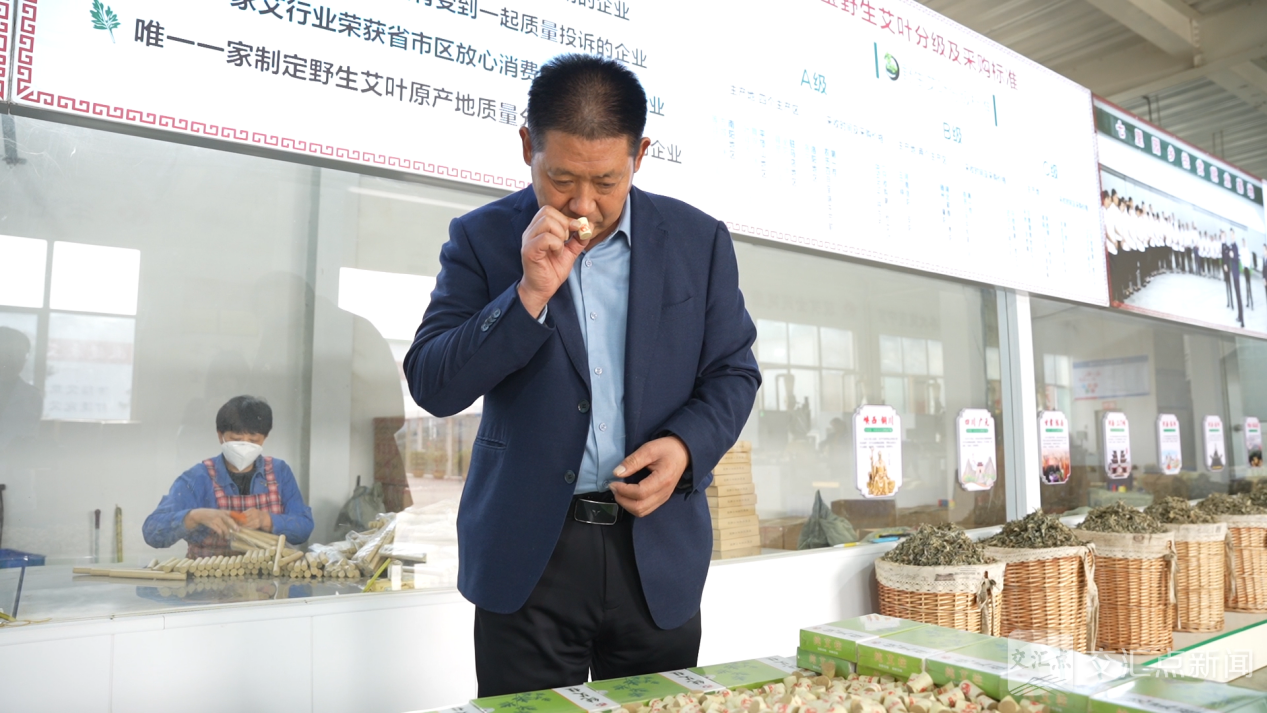 董事长查洪付将几枚风干的艾草叶片放在掌心轻轻揉搓成团,放到鼻尖一嗅,便准确报出:“这片是信阳的,这片是蕲春的。”这手“闻艾识产地”的绝活,是他十几年坚守练出的真功夫……
