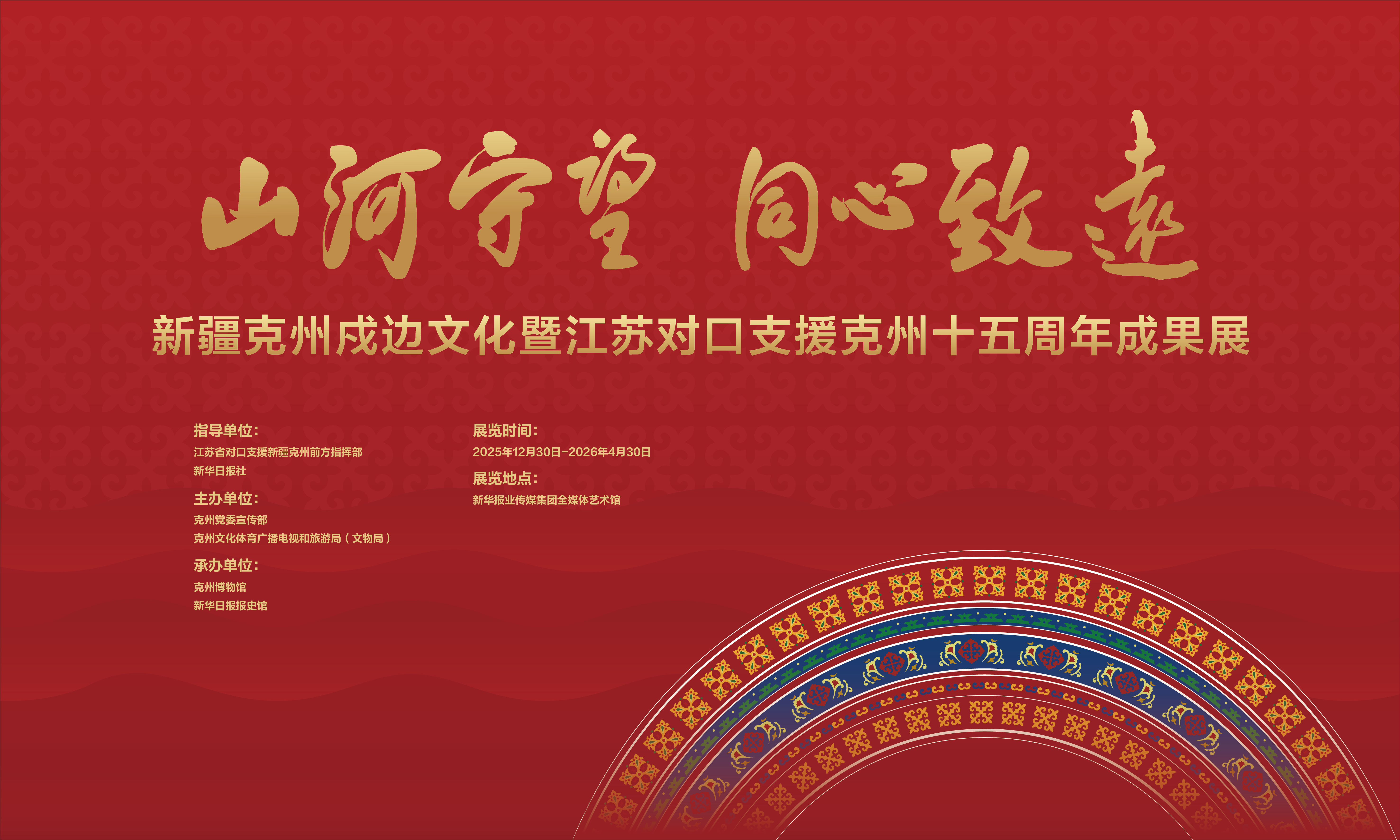 交汇点讯 莽莽昆仑,巍巍天山。地处帕米尔高原的新疆克孜勒苏柯尔克孜自治州与江苏相距近万里,却因对口支援紧紧相依。2025年是江苏省对口支援新疆克州15周年,12月30日,“山河守望 同心致远——新疆克州戍边文化暨江苏援克十五周年成果展”将在新华报业传媒集团全媒体艺术馆开展,集中解锁西陲秘境的独特魅力、展现苏克同心的深厚情谊。