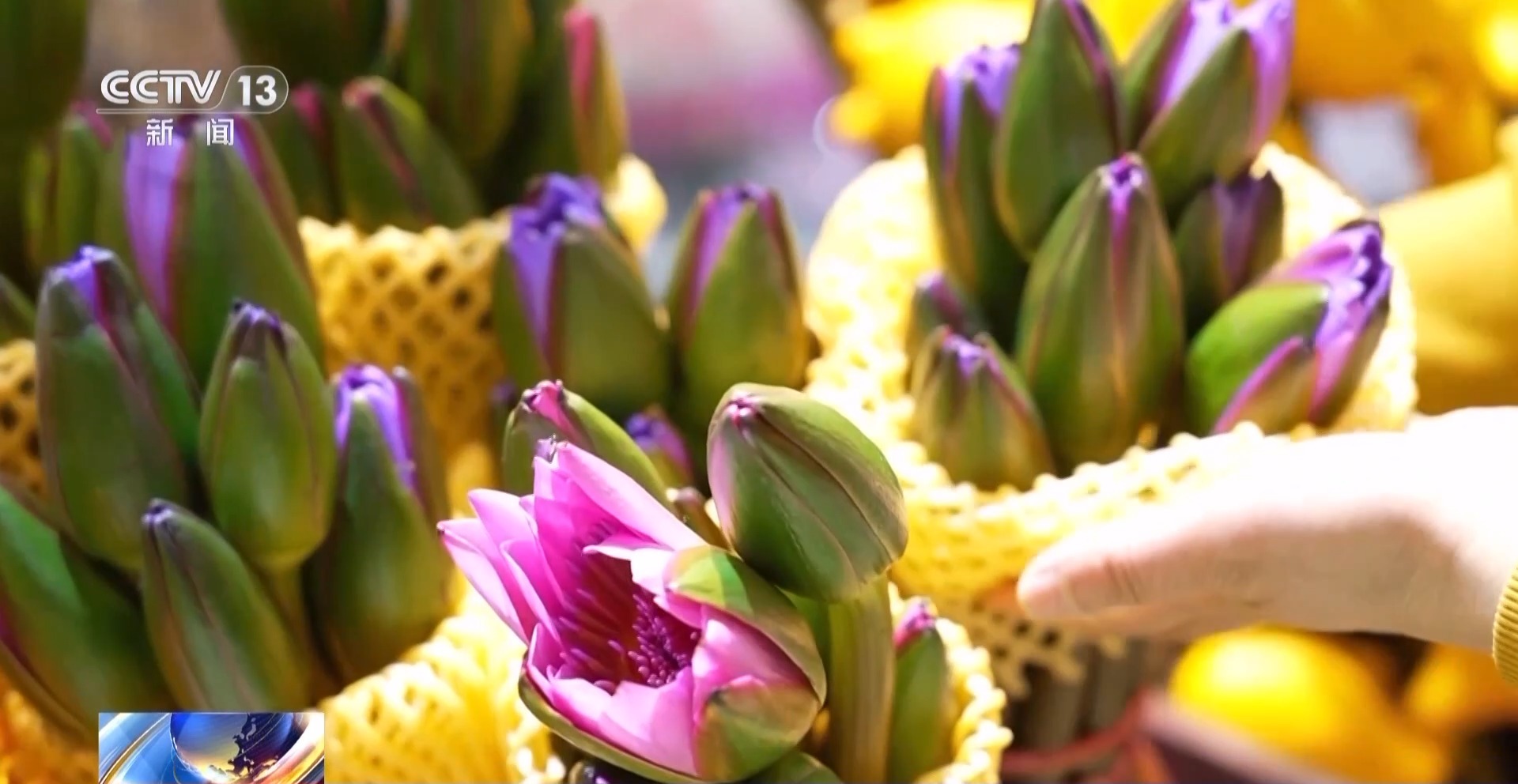 商户 刘强:我们从节前就开始大量备货,货量可能比往常要超个百分之三四十。品种也多了,像以往平时都是以红花为主的,现在今年花色的就比较多。