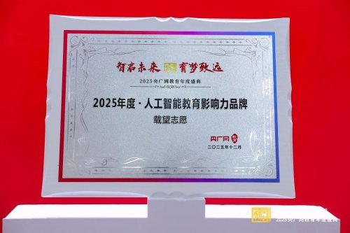 经过组委会专家评审团的层层筛选与严格评选,载望志愿凭借在智慧教育领域的卓越创新与技术积淀脱颖而出,荣膺“2025年度·人工智能教育影响力品牌”殊荣。