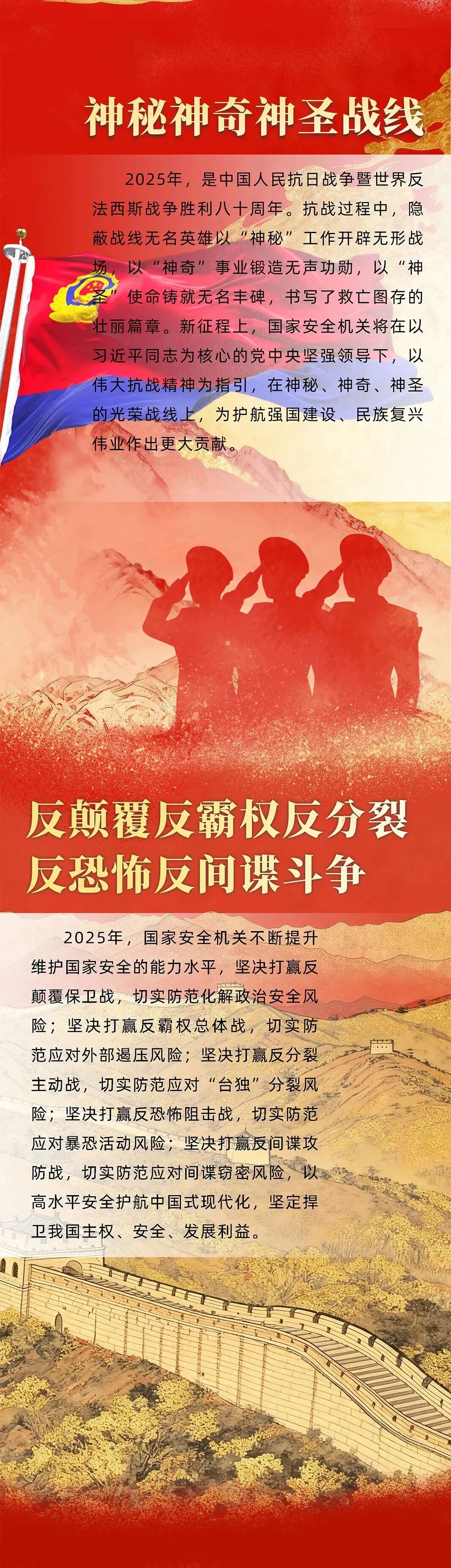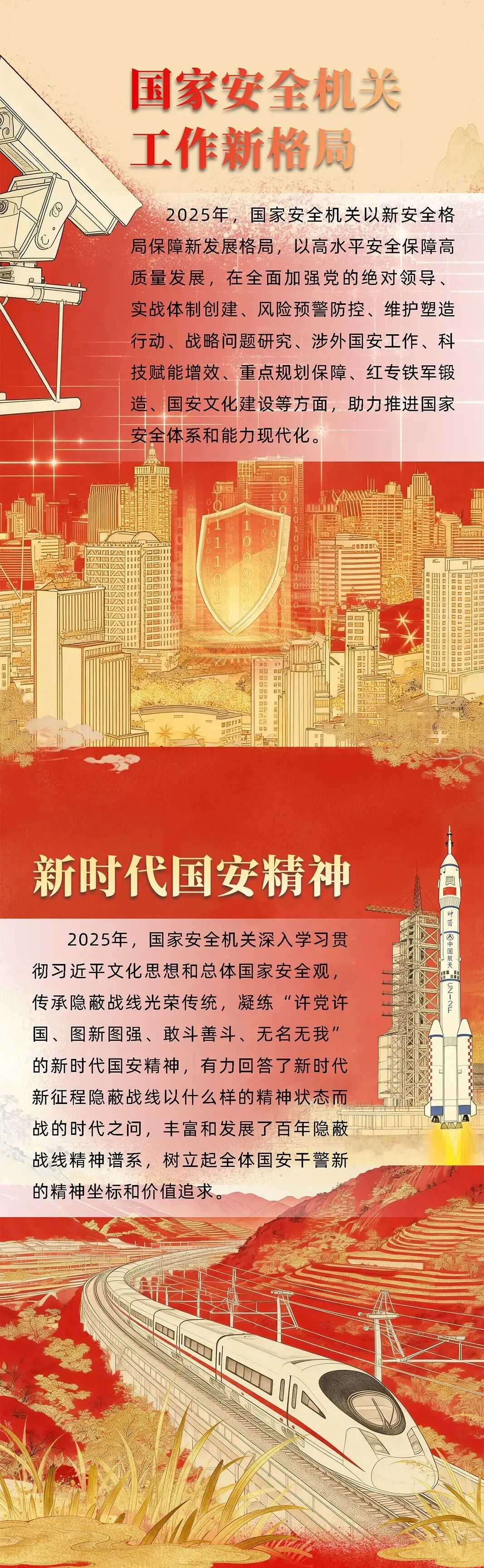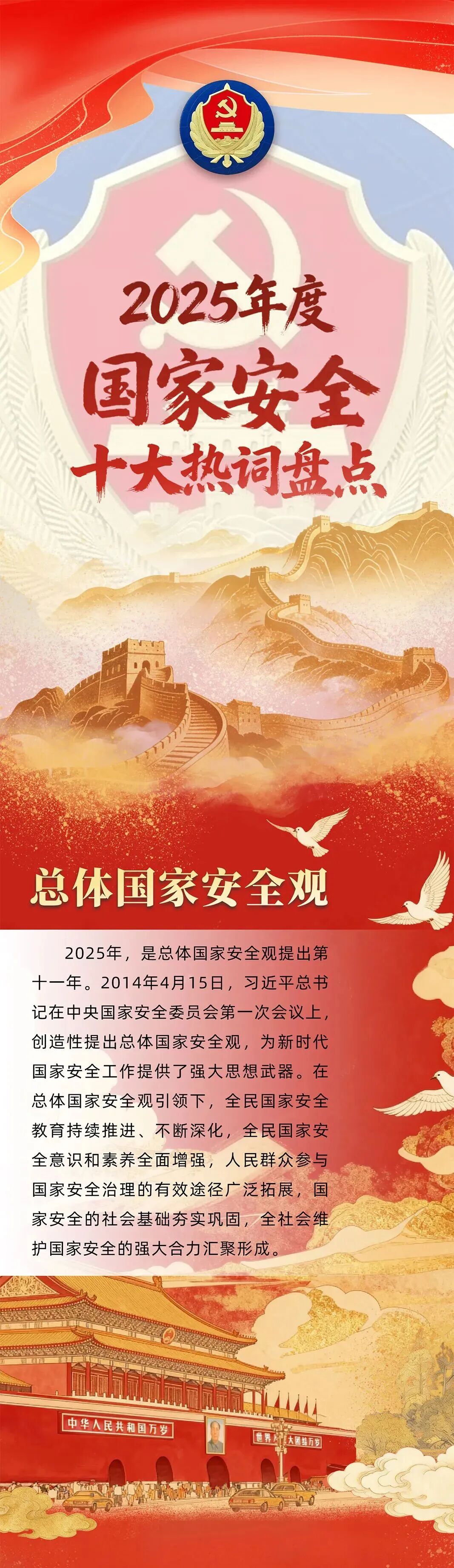 转眼间,我们已至2025年岁末。2025年是我国“十四五”规划收官之年,以习近平同志为核心的党中央团结带领全党全国各族人民迎难而上、砥砺奋进,经济社会发展主要目标任务胜利完成,中国式现代化迈出新的坚实步伐。近日,国家安全部官方微信公众号根据公开数据综合分析,盘点梳理2025年度国家安全十大热词,欢迎广大朋友点赞收藏。