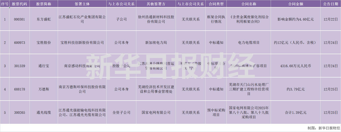 12月22日——12月28日,江苏上市公司公布了哪些重大合同?一起来看。