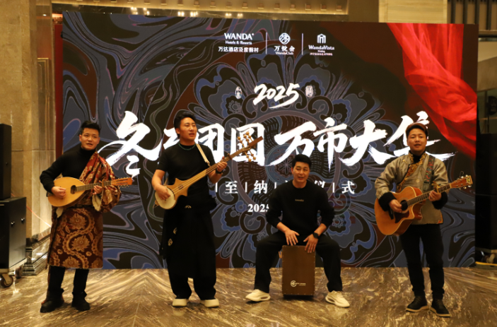 仪式过后,大堂内的民族乐器表演与民歌演唱精彩上演。身着传统服饰的演奏家们轮番登场,悠扬的龙头琴 、深沉的箱鼓、清脆的马头琴交织成动人的旋律,时而如青海湖的碧波荡漾,时而如昆仑山的雄浑壮阔。随后,康巴歌手献上了经典的民歌,高亢嘹亮的嗓音与婉转悠扬的唱腔相得益彰,宾客们围坐其间,或静静聆听,或跟着节奏轻和,在原汁原味的民族音韵中,感受高原文化的独特魅力,将冬至的温馨氛围推向顶峰。无论是嘉宾还是酒店员工,都在这场视听盛宴中,感受到了如同家人团聚般的温馨。
