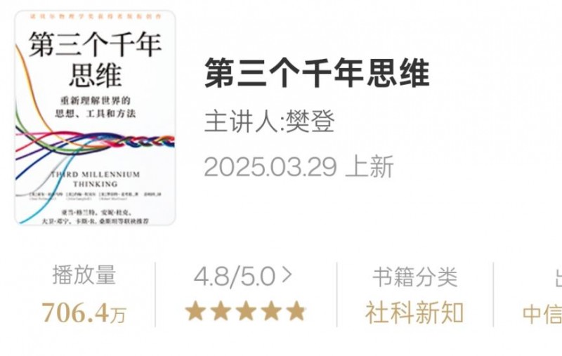 在展望未来的同时,我们需要获得适配新时代的思维工具,以驾驭信息时代的复杂与不确定性。帆书APP“年度新鲜引力榜”《第三个千年思维》,正是这样一份关键的思想指南。它如同一套系统的“心智操作系统”,帮助我们在信息洪流与快速变革中,建立起清晰、理性的思考框架。这份能够被系统习得与强化的思维能力,使我们得以在喧嚣与变化中保持内在的定见与清晰的判断,为应对新年的一切可能挑战,提供了一种更深层、更根本的认知力量。