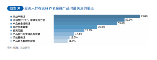 作为兴业银行养老金融研究的年度核心成果,《白皮书》加强政策跟踪与解读,新增我国居民养老行为专项调查研究,发现,近八成受访者愿意投入30%以内的月收入进行养老资金筹备;在配置偏好上,银行存款与理财产品占据主导地位;在投资决策中,收益率、流动性和安全性是最受关注的三大要点;而在产品收费方面,受访者则普遍倾向于与业绩挂钩的付费模式。