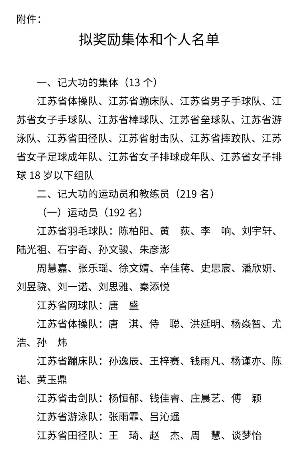 在第十五届全运会上,我省竞技体育项目共获得38枚金牌、33枚银牌、43枚铜牌。为鼓励先进,弘扬奥林匹克精神和中华体育精神,激励我省运动员、教练员及广大体育工作者锐意进取,攻坚克难、再创佳绩。根据《事业单位工作人员奖励规定》,经研究,拟对我省15届全运会表现突出、取得优异成绩、作出杰出贡献的运动员、教练员和集体给予奖励,现将拟奖励名单予以公示。
