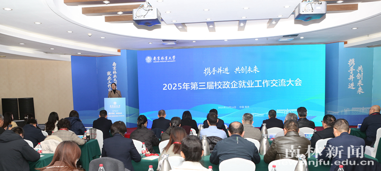 12月26日,“携手并进 共赢未来”——南京林业大学第三届校政企就业工作交流大会在南林大厦三楼多功能厅举行。南京市人力资源和社会保障局局长孙爱军,南京林业大学副校长张晓琴等出席会议。南京市各区人社部门、18家重点合作企业负责人以及学校学生工作部(处)、研究生工作部主要负责人,各学院分管学生工作负责人和学校就创业指导中心相关工作人员等参加会议。
