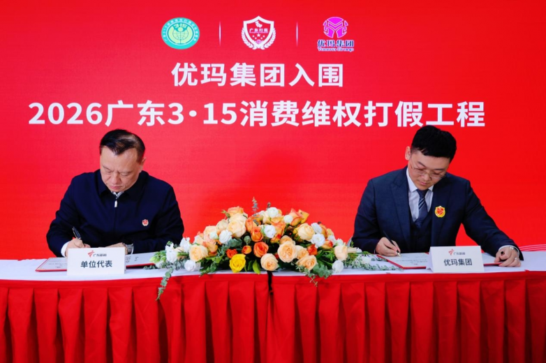 在数字经济与实体经济深度融合的背景下,消费已成为推动经济增长的重要引擎。为进一步强化消费者权益保护,优化消费环境,提振消费信心。2025年12月28日,以“强维权、优环境、促消费”为主题的“2026广东3·15消费维权打假工程”入围签约仪式在广东广播电视台举行。优玛(广州)生物科技有限公司作为深耕美业科技抗衰领域16年的企业,凭借高端美容仪器出口积淀、AI智能抗衰核心技术、覆盖全国的服务网络及多项国际资质专利,以硬核技术实力与诚信经营理念,从5586家参与申报的企业中脱颖而出,成功入围。