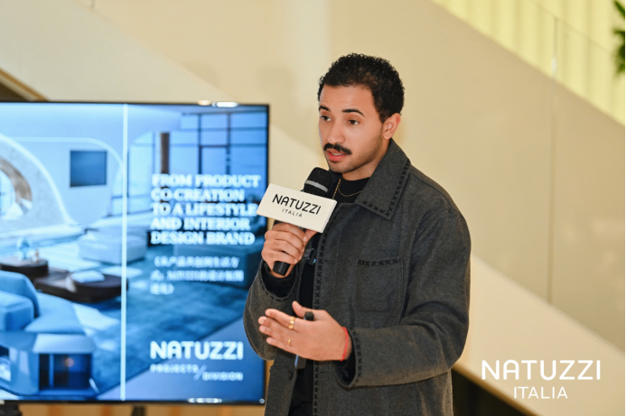 如果说 Andrea Steidl 是设计哲学的传递者,那么 Pasquale Junior Natuzzi 则扮演着品牌战略的布道者与生态共建的发起人。在每一站的分享中,他清晰地勾勒出 Natuzzi Italia 从“制造者”向“生活方式解决方案提供者”进化的战略蓝图。尤其在题为《从产品共创到生活方式:Natuzzi的设计版图进化》的分享中,他正式向中国设计社群揭示了驱动这一转型的核心引擎——Natuzzi Projects Division 的成立。他阐释道,该部门专为室内设计师、建筑师与开发商构建,提供从概念构思到最终落地的“交钥匙”全案服务,业务范畴已从住宅与别墅,延伸至酒店、办公空间及品牌化住宅等综合性项目。Pasquale Junior Natuzzi 系统介绍了支撑该体系的四种合作模式:从基础选品、灵活定制、完全定制,直至覆盖整体空间的全案设计,并以迪拜住宅项目等全球案例,生动诠释了从"制造单件家具"到"淬炼完整生活美学体系"的跨越式成长。