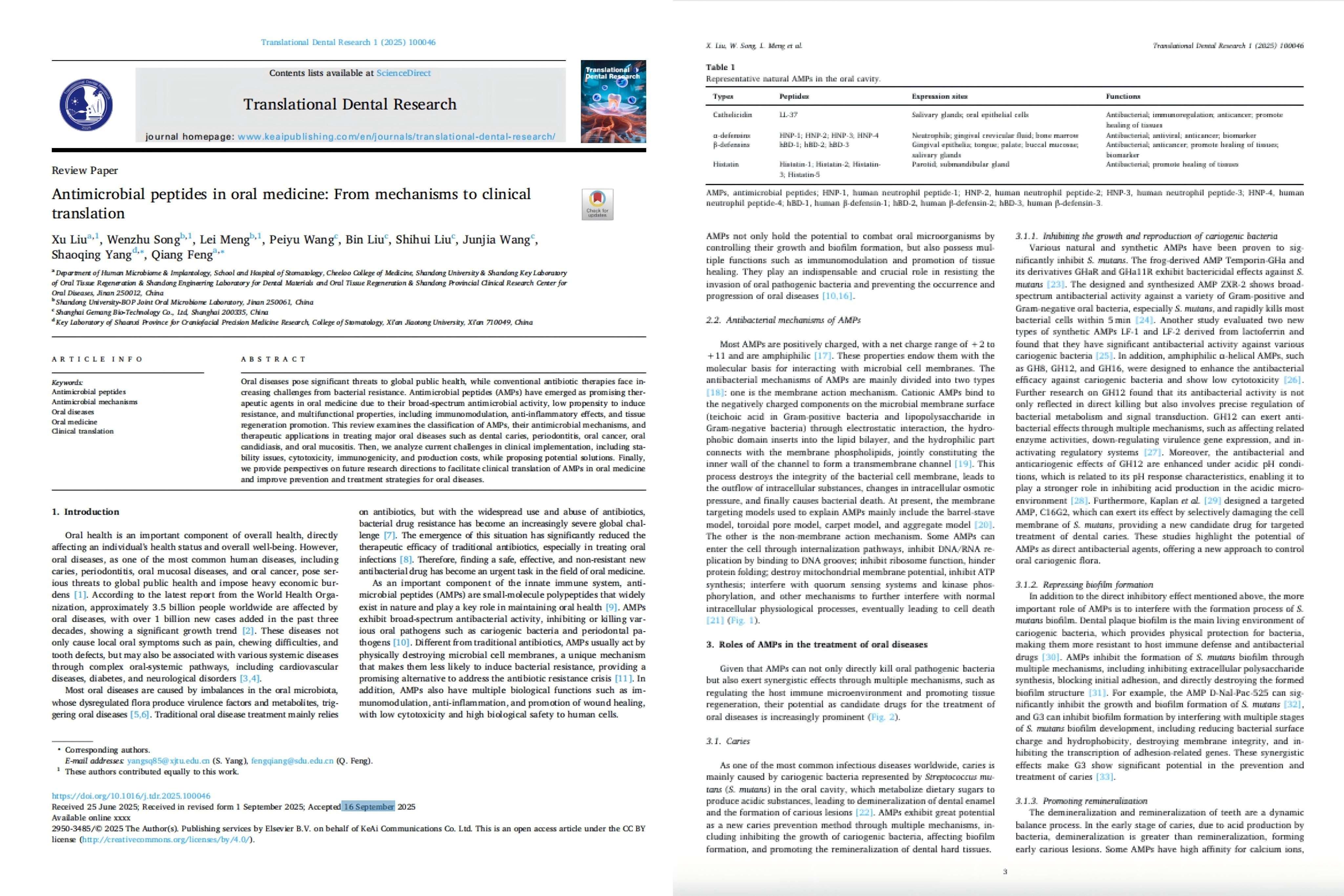 在《Translational Dental Research》最新刊发的论文中,研究团队聚焦于抗菌肽在口腔健康维护中的作用机制与转化潜力。研究指出,该成分能特异性识别口腔致病菌,通过物理作用破坏其结构,在抑制生物膜形成、调节局部免疫反应等方面表现出显著效果。该机制与传统化学抑菌剂不同,不易诱导细菌耐药性,为开发新一代口腔护理产品提供了科学依据。