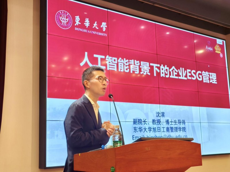 本次培训还邀请到东华大学沈滨、郑斐峰、汪达钦三位教授,从不同角度深入解读AI技术的应用。沈滨教授以《人工智能背景下的企业ESG管理》为主题,提出“AI+ESG”融合框架,强调通过数据建模与风险评估工具,助力企业实现环境、社会与治理维度的可持续发展目标。